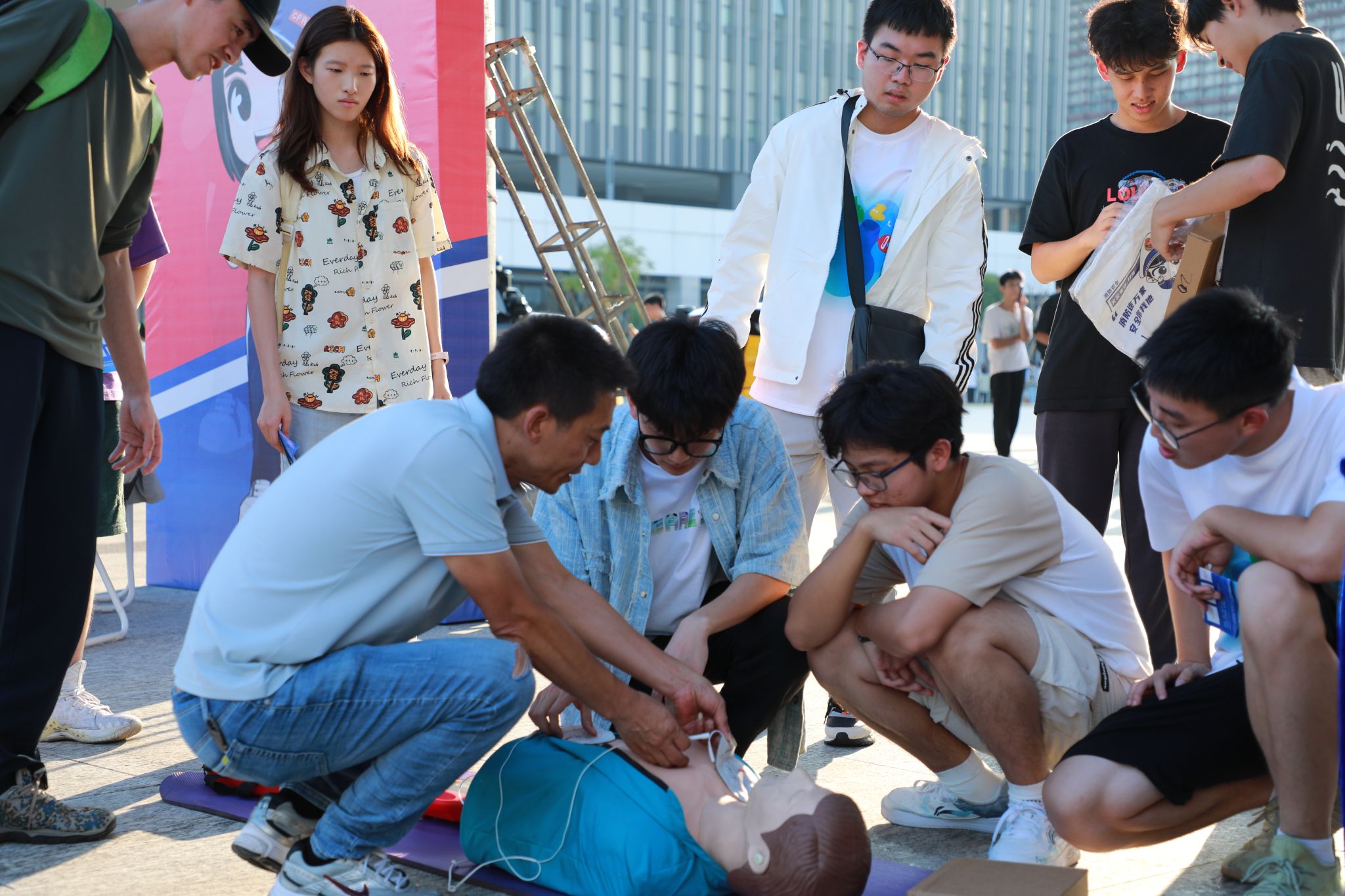 活动包含消防救援装备展示、浓烟逃生体验屋、防烟面具穿戴、消防器材讲解与实操、用电安全体验、电动自行车火灾危害认识等全面丰富的消防安全内容,在场师生学习如何识别并正确操作手动报警装置,掌握油锅、电器火灾的扑救方法,了解心肺复苏(AED)急救技术等。在疏散演习活动中,消防工程师结合会堂指引图,详细介绍了遇到紧急状况时如何迅速有效地进行疏散逃生。