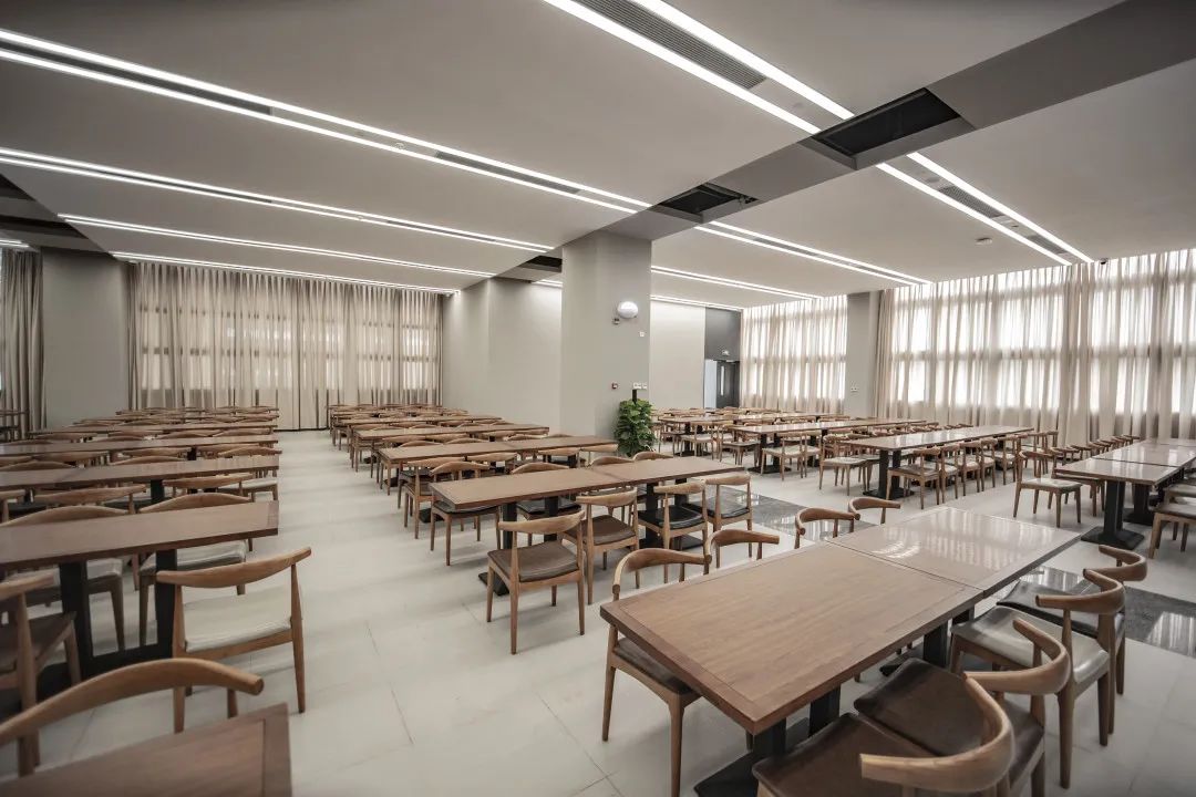 学校食堂分北区食堂、竹韵食堂、石井食堂三处,总用餐面积约7660平方米,共摆放座位3200余个,可满足8700人就餐需求。