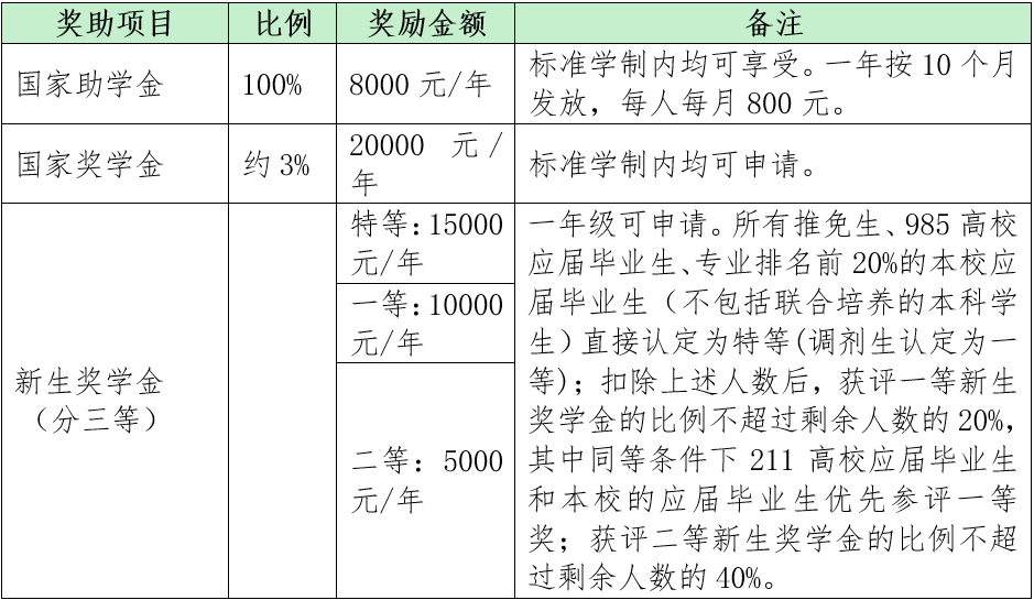 按照我校奖助政策体系,推免生第一年可获得至少5.8万元奖助学金,表现优异的可获得超8.8万元奖助学金,如累计社会(企业)奖学金等,所获奖助学金可超过10.3万元。