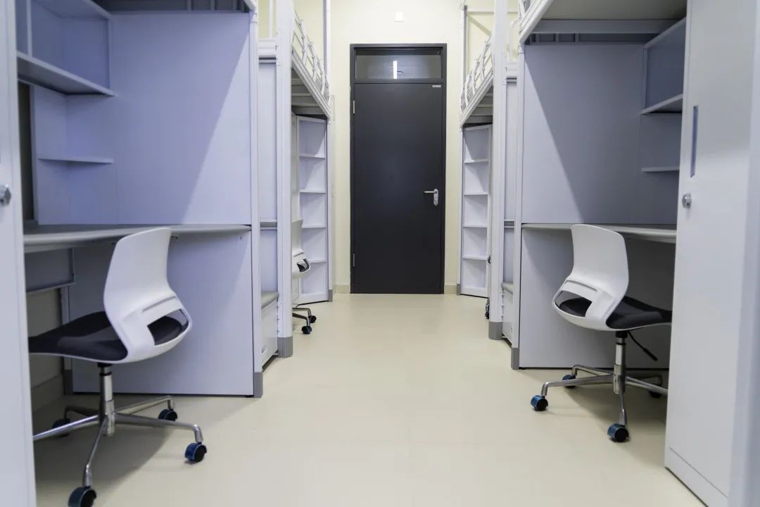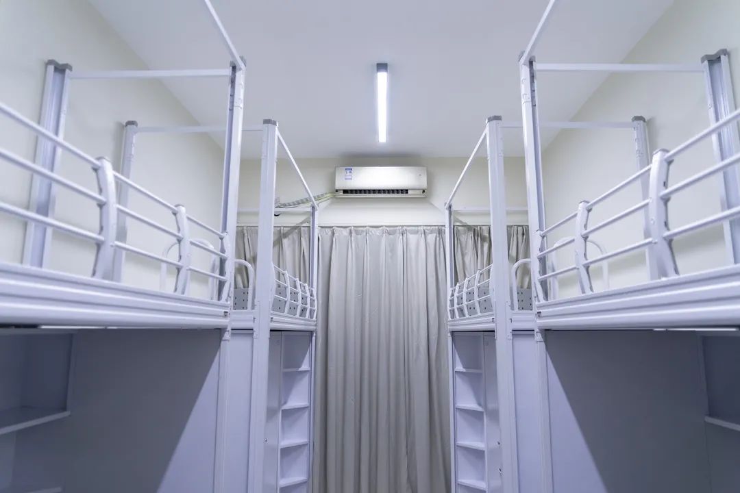 硕士研究生2人一间,博士研究生1人一间。宿舍配有空调,有独立的淋浴间和卫生间。