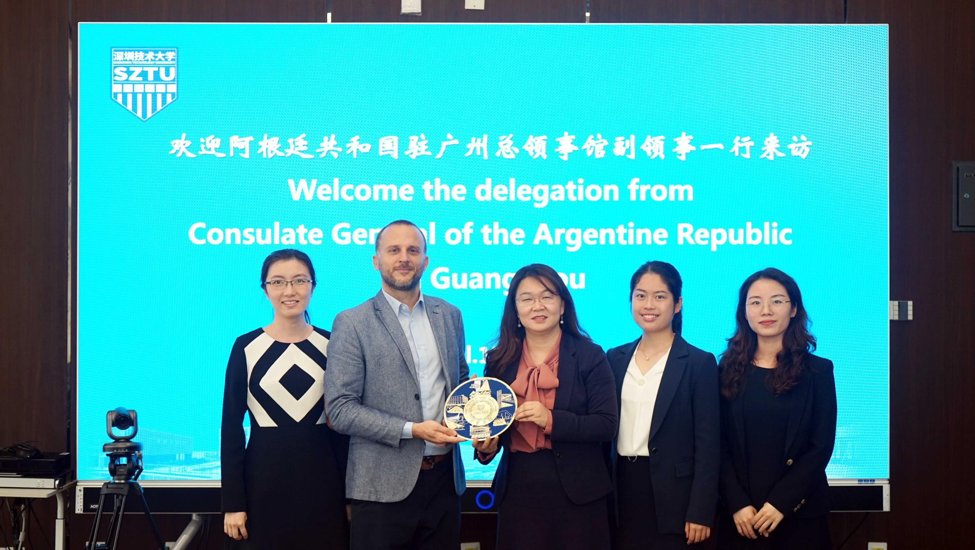 深技大国际合作与学生工作部主任曾思予向领事一行的来访表示欢迎,并对学校国际合作模式做了相应介绍。她说,迄今为止,学校已与德国、瑞士等国多所应用技术大学建立良好合作关系,希望领事能够为学校与拉丁美洲高等院校的合作搭建桥梁,欢迎阿根廷学生前来访学、留学,开展各类学术、文化交流活动。