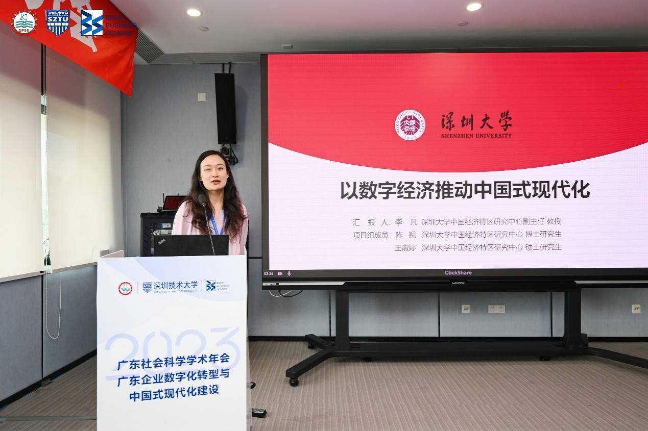 深圳大学中国经济特区研究中心副主任、乡村振兴研究院院长,广东经济学会副会长李凡以“以数字经济推动中国式现代化”为主题,介绍了中国式现代化的丰富内涵及面临的严峻挑战,阐释了数字经济的科学内涵,以人工智能为例,讲述探索中国式现代化的实践途径。