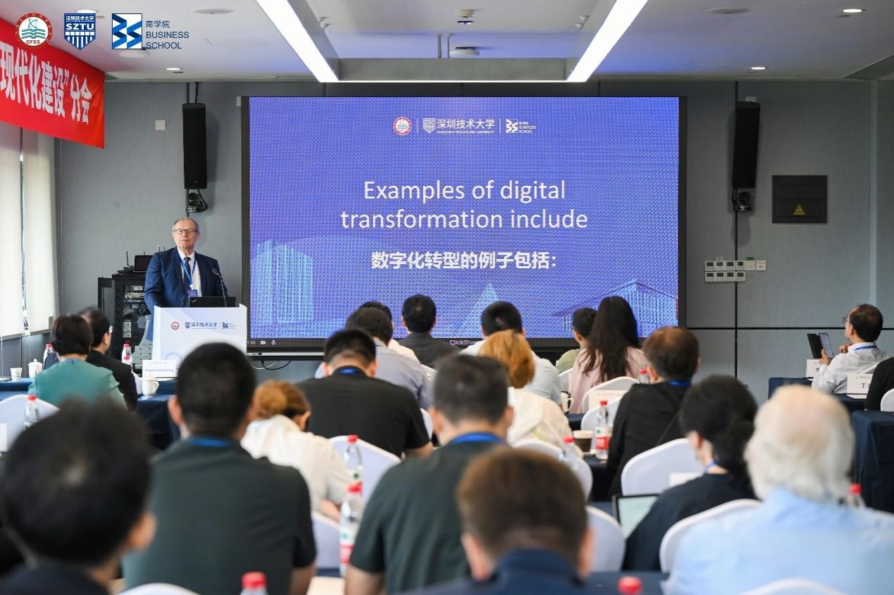 深技大商学院荣誉院长霍尔格・哈顿旺致辞。他表示,数字化对人类社会的进步起到重要作用,希望借助本次学术研讨会,助力学界与企业紧密合作,共同推动数字经济的发展和中国式现代化建设。
