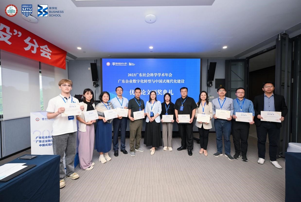 学术年会还设有三场平行论坛,40余名专家学者分别围绕各论坛内容进行专题发言,共同探讨广东企业数字化的最新研究成果。会议闭幕式上,深技大商学院党支部书记丁卓琪为本次年会分会优秀论文作者颁发荣誉证书。