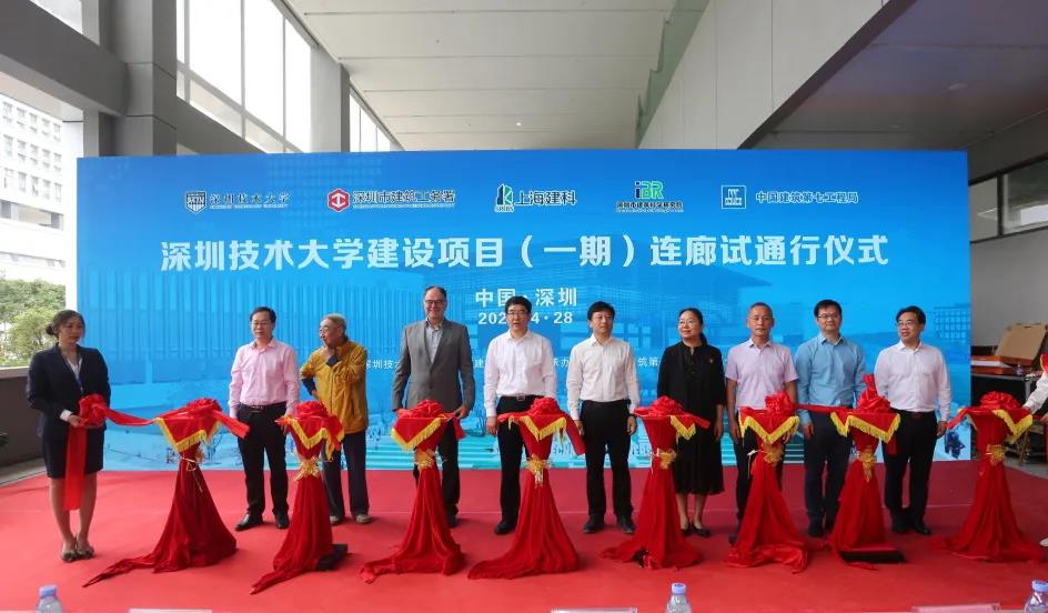 4月28日上午,欧冠官方网站入口建设项目(一期)连廊试通行仪式在公共教学楼二楼架空层举行。中建七局南方分局董事长孙学新,深圳大学建筑设计研究院教授吴家骅,上海建科副总经理邓绍伦,深圳市建筑工务署副署长冯永乾,欧冠官方网站入口校长阮双琛先后致辞。欧冠官方网站入口党委副书记、纪委书记张岩鸿,副主任徐刚,师生代表及项目建设人员代表130余人参加了仪式。