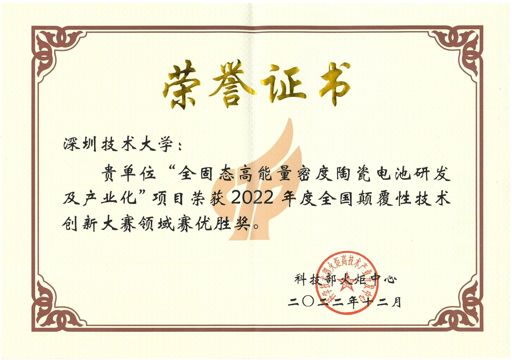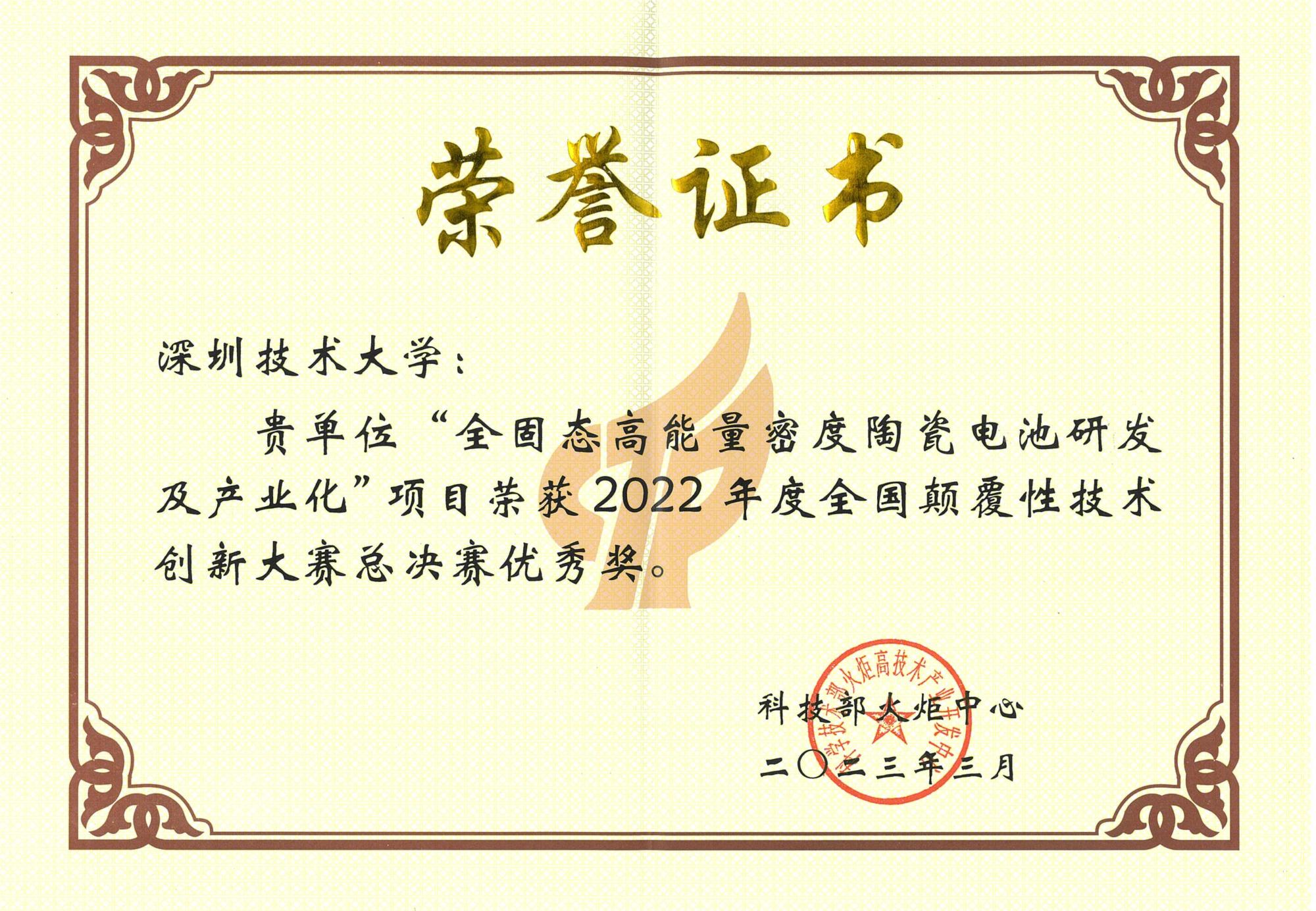 近日,由科技部主办、科技部火炬中心承办、浙江省科技厅和杭州市人民政府共同协办的2022年全国颠覆性技术创新大赛结果揭晓,由欧冠官方网站入口聚龙学院(创新创业学院)院长刘清侠院士团队杨涛副教授带领的项目从全国2800多个优质项目中突出重围,斩获领域赛优胜奖和总决赛优秀奖,成为深圳市唯一获奖的高校项目。