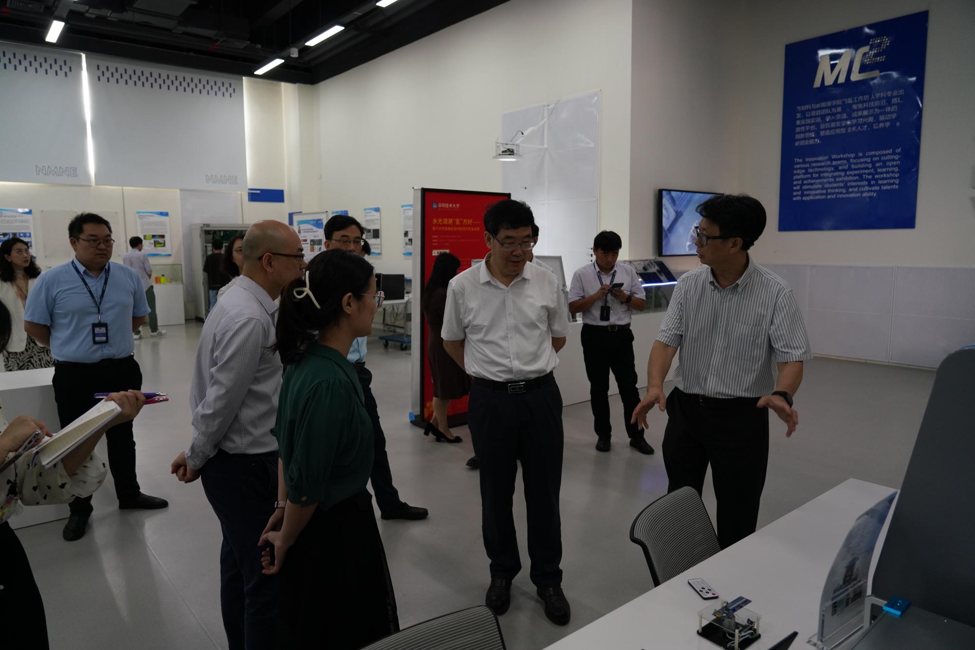阮双琛一行还参观了新材料与新能源学院广东省高校晶体生长与应用工程技术研究中心、晶体加工实验室、材料物相测试实验室、学院创新工作坊等多个重点实验室,了解了师生的多项研究成果。