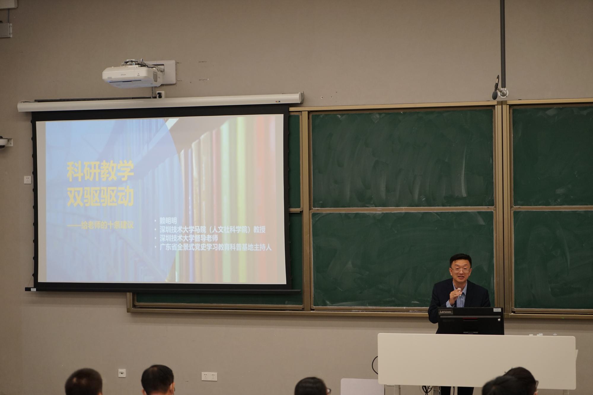 赖明明教授带来题为《科研教学双驱驱动——给老师的十条建议》的讲座,分享了他的教学与科研心得。他说,教学与科研要做到双驱驱动、相得益彰、互相促进,广大教师要明确科研方向,严守学术规范,严以律己、知行合一,相信有为就有位,有努力就有收获,做“有理想信念、有道德情操、有扎实知识、有仁爱之心”四有好老师,当学生锤炼品格、学习知识、创新思维、奉献祖国的引路人。