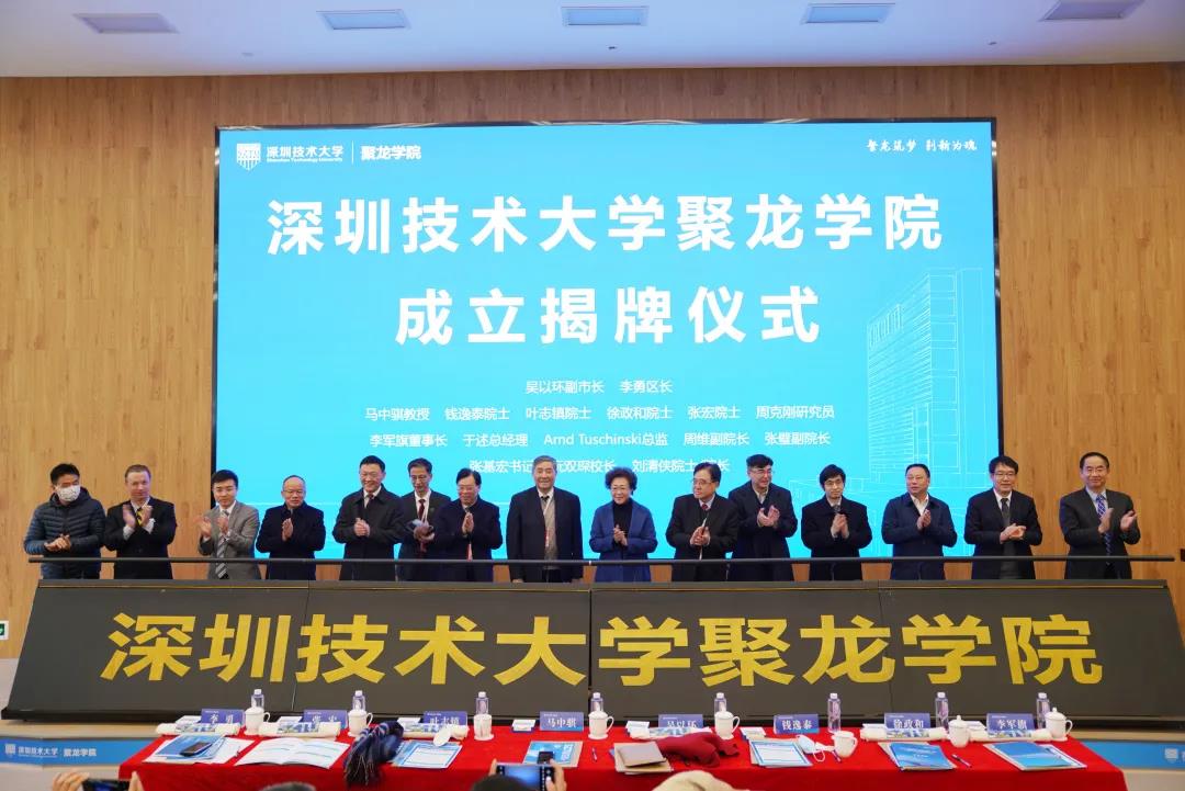 深圳市政府副市长吴以环,中国科学院研究员马中骐,中国科学院院士钱逸泰、叶志镇,加拿大皇家科学院、工程院院士徐政和,加拿大工程院院士张宏,坪山区委副书记、区长李勇,富士康工业互联网股份有限公司董事长李军旗,欧冠官方网站入口党委书记张基宏,校长阮双琛,各高校、企业代表及我校师生代表参加活动。成立仪式由聚龙学院院长、加拿大工程院院士刘清侠主持。