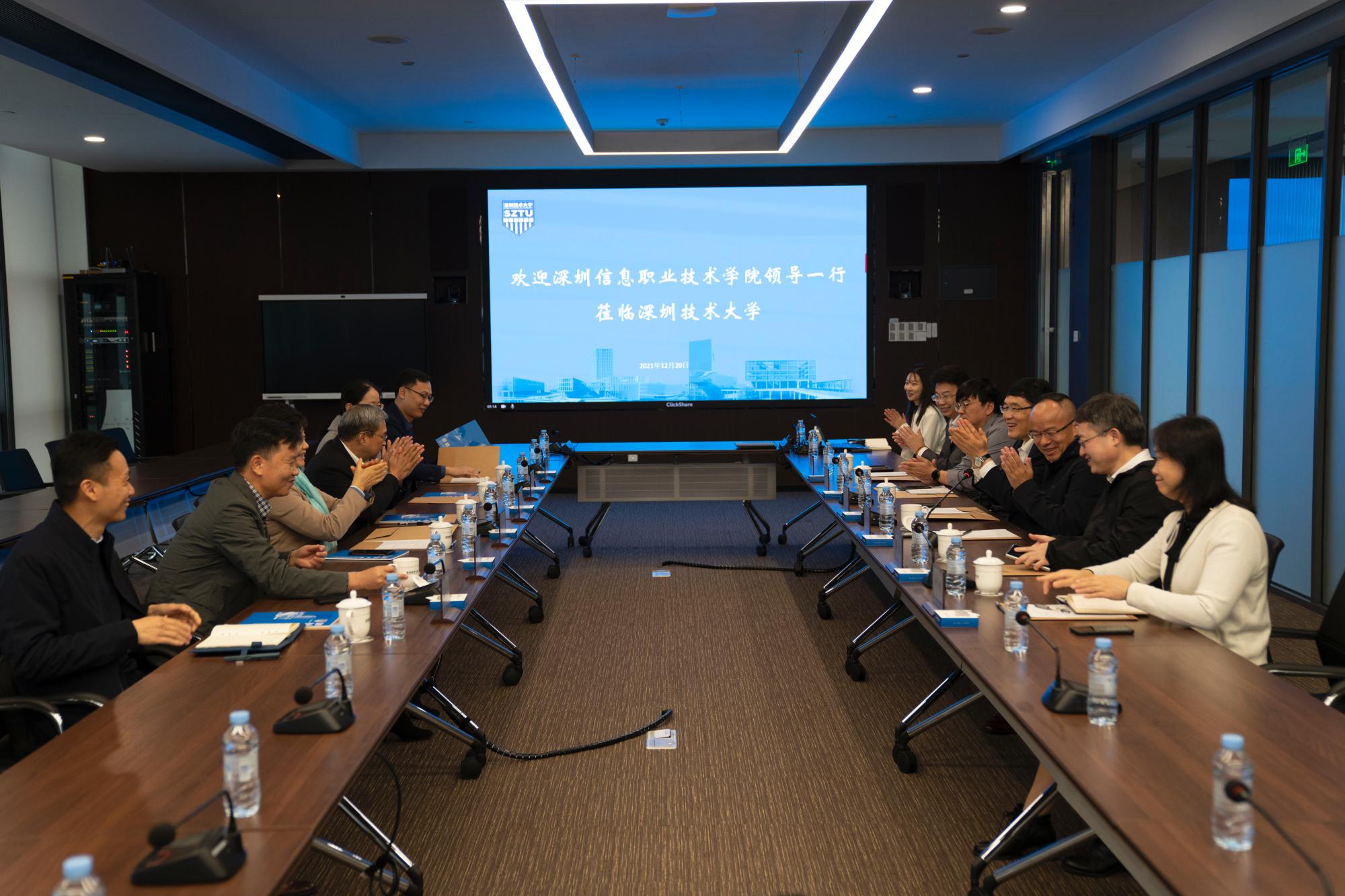 12月20日下午,深圳信息职业技术学院党委书记刘锦,校长王晖,副校长姚学清,副校长周彦兵一行来访欧冠官方网站入口。党委书记张基宏,校长阮双琛,副校长梁永生参加座谈,相关职能部门负责人陪同座谈。