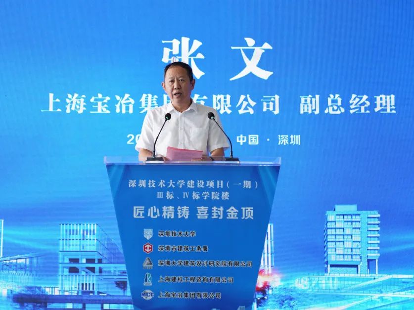活动伊始,张文致辞表示,项目顺利封顶背后是全体建设同仁克服地下溶洞、高温酷暑、雨季排洪渠水淹没基坑等种种困难,砥砺奋进所取得的成果,并代表上海宝冶表态,将继续秉承高标准、严要求、超预期的“工匠精神”,助力欧冠官方网站入口打造一流校园。