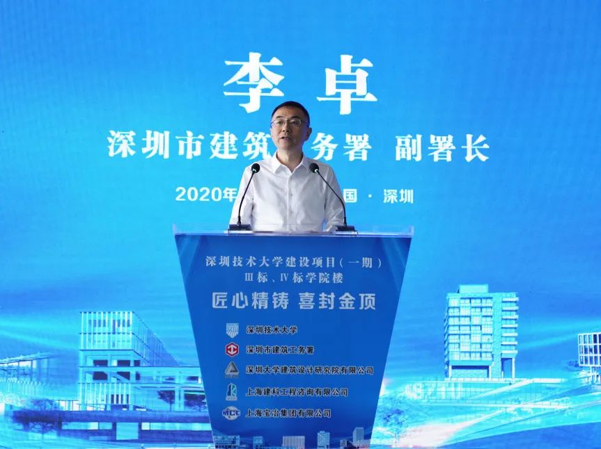 随后,李卓代表深圳市建筑工务署对深技大师生表示热烈祝贺、向大力支持项目建设的各单位表示感谢。他表示,希望各参建单位牢记使命,抓住机遇,把市领导的要求、学校的需求、师生们的期盼更好地转化成建设的动力,昂扬奋进,继续做好项目后续建设的各项工作。