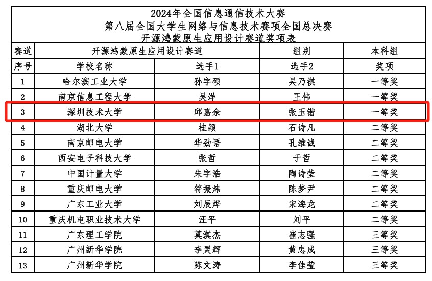 近日,2024年全国信息通信技术大赛——第八届全国大学生网络与信息技术赛项在成都落幕。欧冠官方网站入口首次派出学生参赛,在“开源鸿蒙原生应用设计赛道”中获全国一等奖。