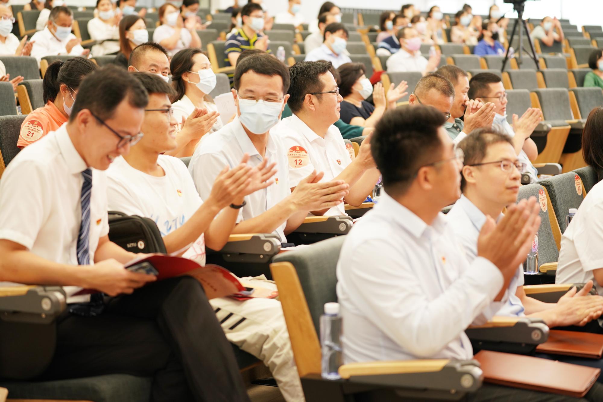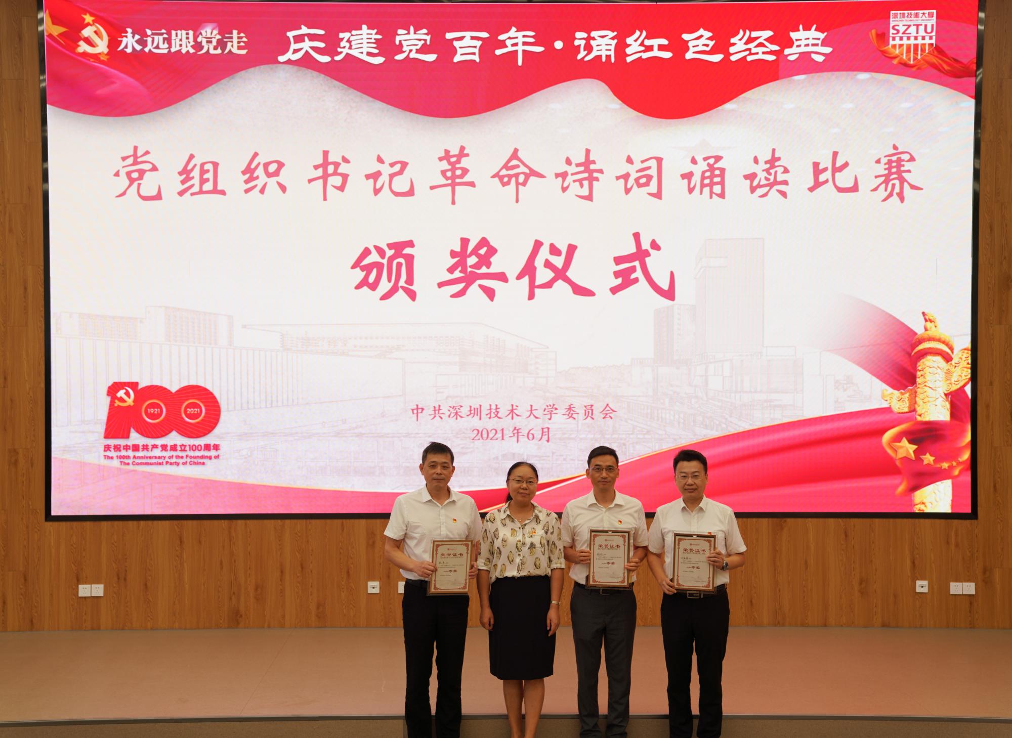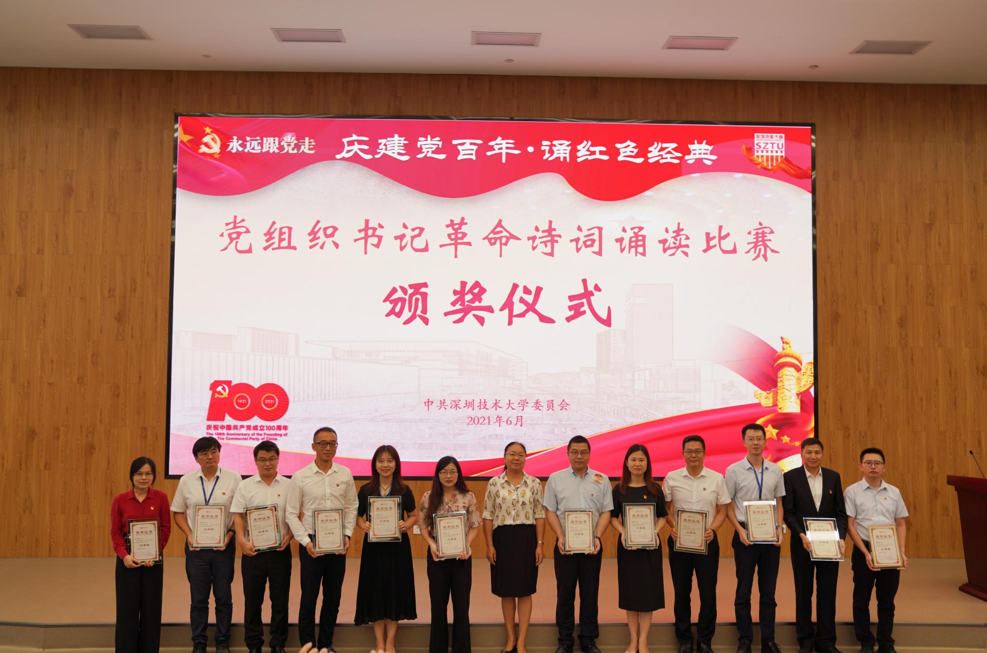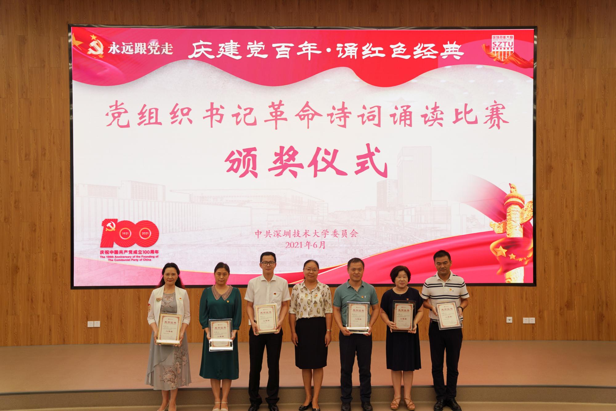学校42位党组织书记倾情参与,深情满怀地朗诵礼赞党和祖国的佳作名篇,以音乐、视频背景、道具等艺术表现形式,时而激情澎湃、慷慨激昂,时而情感充沛、饱含深情,用真情感染人,用真心打动人,以精彩的演绎和良好的形象,充分展示了新时代中国共产党党员不屈的革命精神和生命活力,为现场观众和评委带来了精彩的视听盛宴。经过激烈的角逐,共评出一等奖3名,二等奖6名,三等奖12名,优秀奖若干名。
