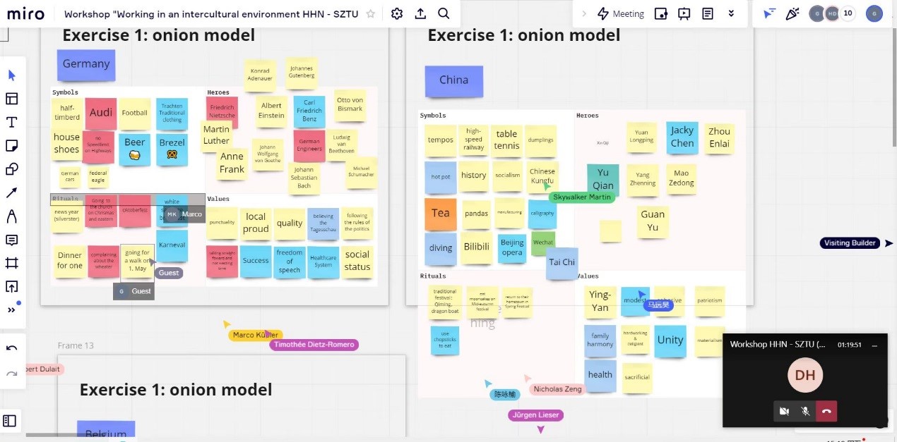 同学们纷纷表示,课程让他们受益匪浅。商学院2019级何欣洋同学说,“这场持续四个半小时的线上workshop对我来说非常有趣,也非常具有挑战性。通过洋葱模型我了解到中国、德国和比利时三个国家在象征物、英雄人物性格、礼仪以及价值观上的共通与差异。德国人说话相较中国人更为直接,我们也尝试用委婉的语气‘改写’一些直接的表达。最具挑战性的是商务谈判的角色扮演环节,在这场谈判中我深刻感受到中德文化差异。德国小伙伴们非常像一个专业团队,非常严谨且直奔主题——签合同,他们对我们发出的共进晚餐的邀请却不太感兴趣。这场国际课程让我对中德文化差异,以及在跨文化环境中工作需要考虑的因素有了更深刻的理解,还见到了可爱的德国朋友们!希望学校以后能开设更多相关的国际课程。”