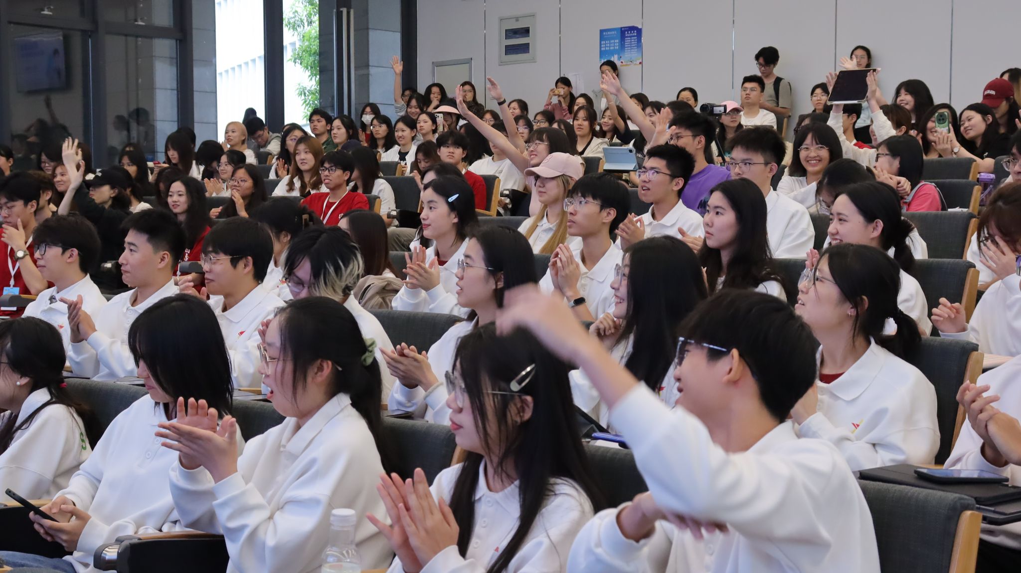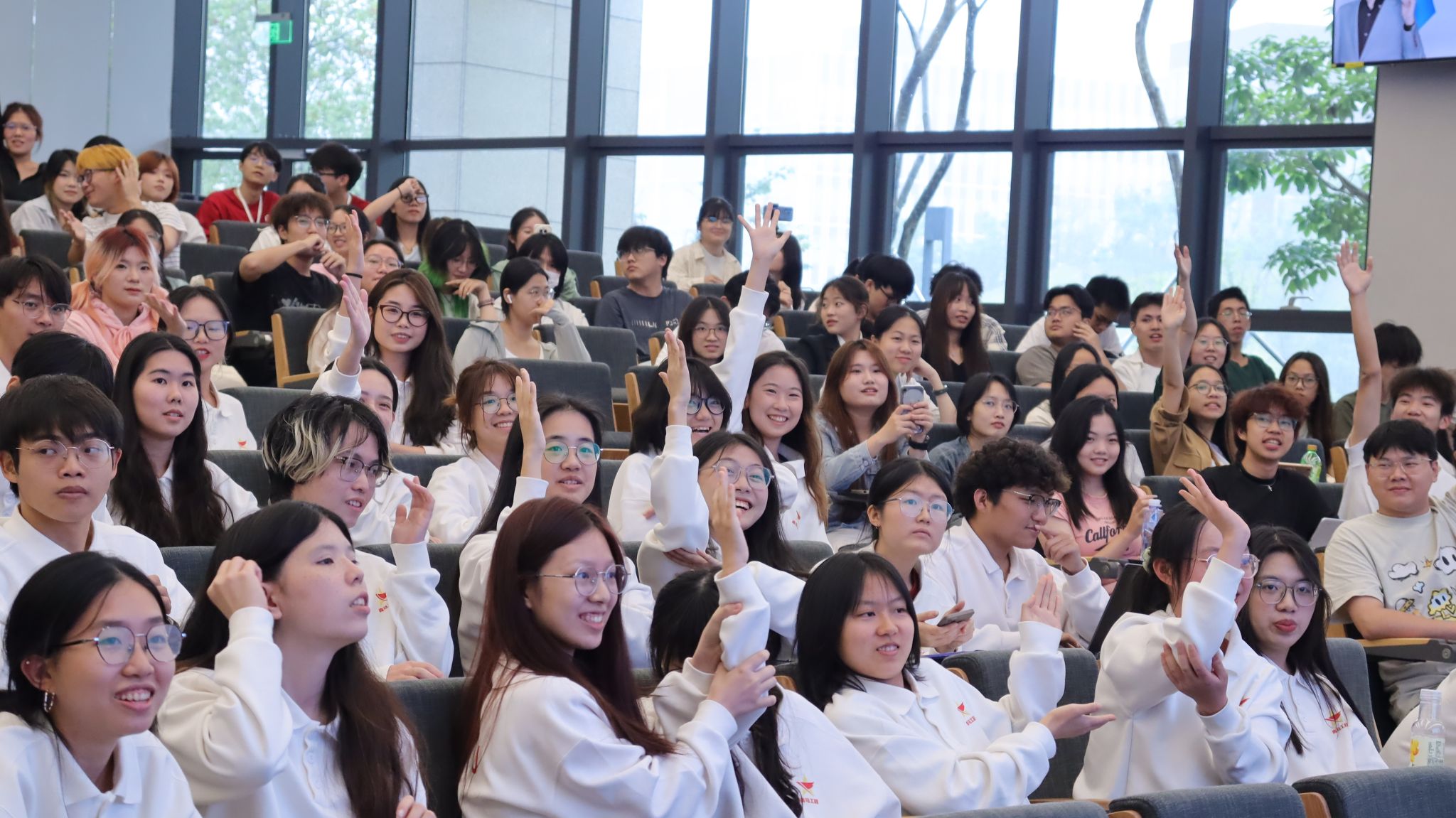 在交流环节,同学们踊跃提问,针对学习方法、未来规划、国际交流、能力锻炼、当下困惑等方面提出了十余个问题。胡明昊结合个人看法、自身经历一一进行解答、回复。活动现场气氛热烈、互动频繁。胡明昊幽默的发言时不时引来现场学生阵阵掌声、笑声和欢呼声。