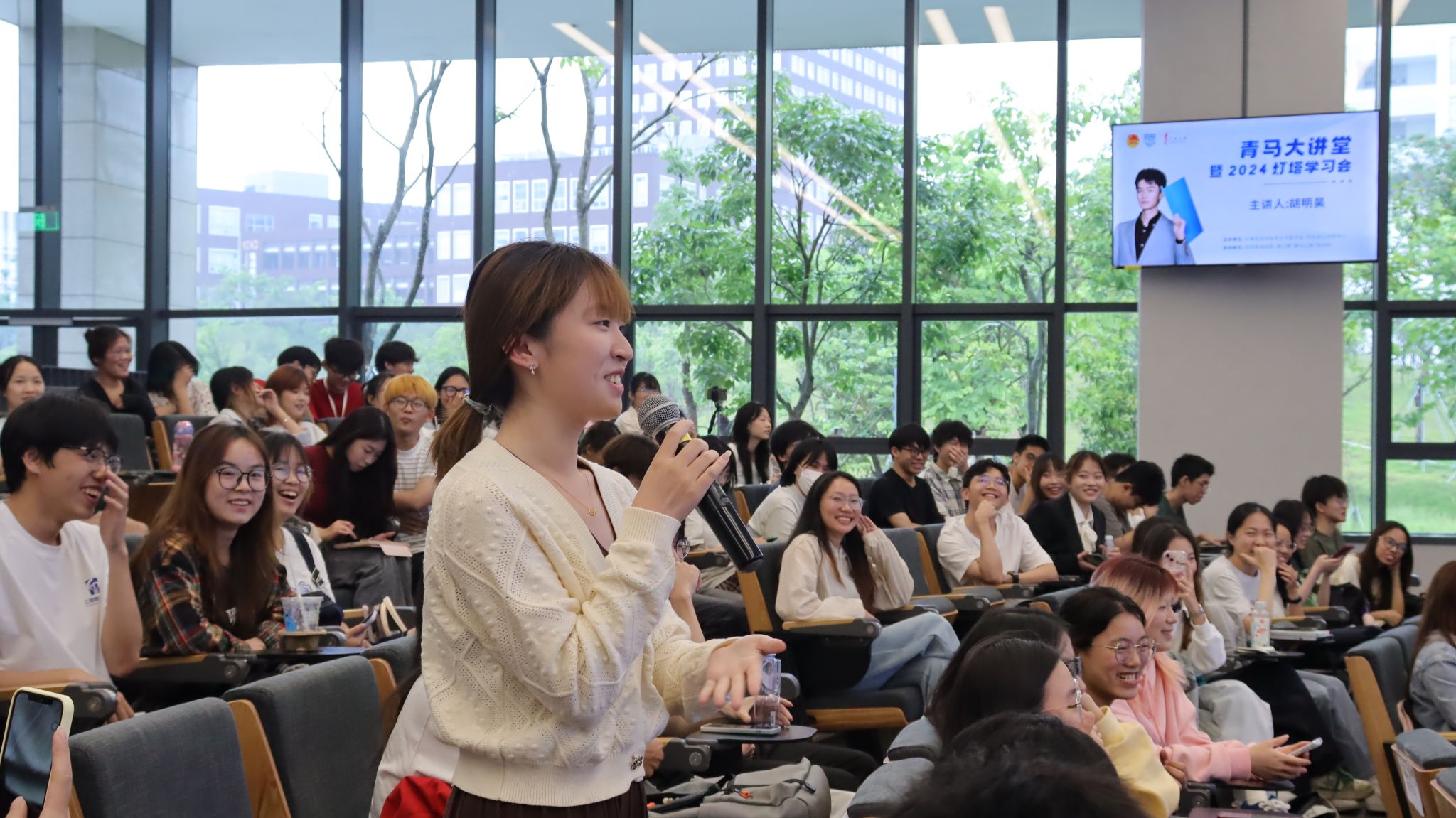 青马1班黄聃:参加了此次讲座,我备受启发。胡明昊学长不仅分享了自己的宝贵经验,还强调了持续学习积累和勇于挑战自我的重要性,更重要的是在面对一切情况都要保持稳定的情绪。胡明昊学长的经历和见解为我提供了新的视角,特别是在提问环节,他对“如何学好英语”以及相关的具有国际视野的问题的解答,对于我,一个作为英语专业的学生来说,实在是受益匪浅,也让我对未来的求学道路和职业生涯充满了期待和动力。这次讲座是一次难得的学习和成长的机会,能够让我对自己有更清晰的认知,我理解到了在提升自我的道路上“强大的底蕴和稳定的内核缺一不可”,这对我来说是最大的收获。悄悄说一句,学长真的比电视上还帅!
