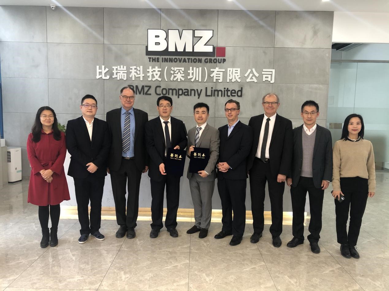 12月10日,欧冠官方网站入口校长阮双琛一行前往BMZ China比瑞科技(深圳)有限公司总部考察参观,双方正式签署校企合作协议,并就校企共建实验室、搭建实习实训基地、开设特色实验班等问题进行了深入探讨。