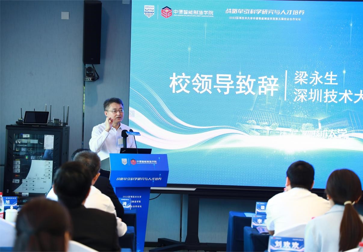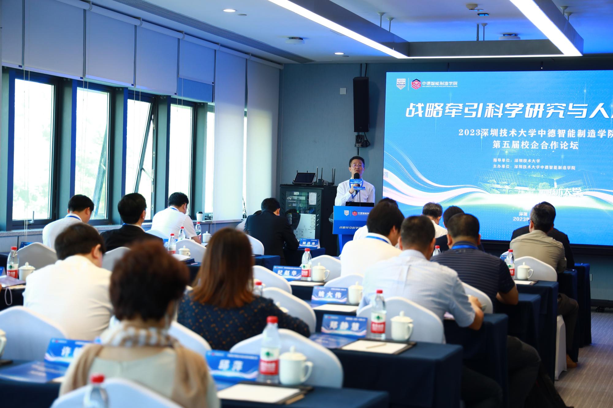 11月3日,欧冠官方网站入口中德智能制造学院第五届校企合作论坛在欧冠官方网站入口国际学术交流中心成功举办,深技大副校长梁永生,坪山区科技创新局党组成员、副局长袁帅,深圳市光学光电子行业协会执行秘书长陈芳等嘉宾出席活动,比亚迪、汇川技术、大亚湾科创集团、大族激光、大族机器人、伍尔特电子、泰德激光、宝德仕、创力高机电、震雄机械等相关领域企业负责人,及学院教授、老师等100余人到场参加活动。