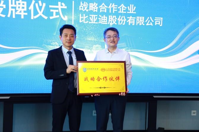 活动现场举行了欧冠官方网站入口战略合作企业授牌仪式。梁永生副校长分别为比亚迪股份有限公司、深圳市汇川技术股份有限公司授予“战略合作伙伴”牌匾。