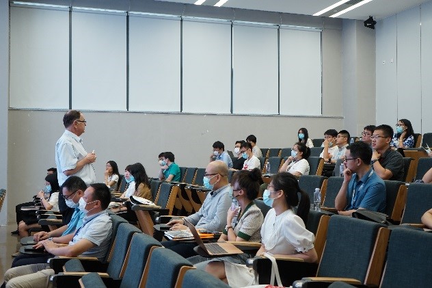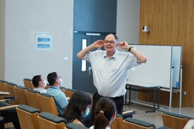 Franz Raps教授的讲座主题为Teaching and Learning Methods。讲座中,Franz重点介绍了德国的教育模式,他表示,应用技术型大学在德国普遍存在,这类大学注重学生实践能力的培养,为产业、企业培育发展所需的应用型人才。他在讲座中连连抛出 “何为教”、“何为学”、“如何成为一名好教师”等问题,与现场教师深入探讨,强调新教师要热爱教学、爱护学生,助力学生成长成才。