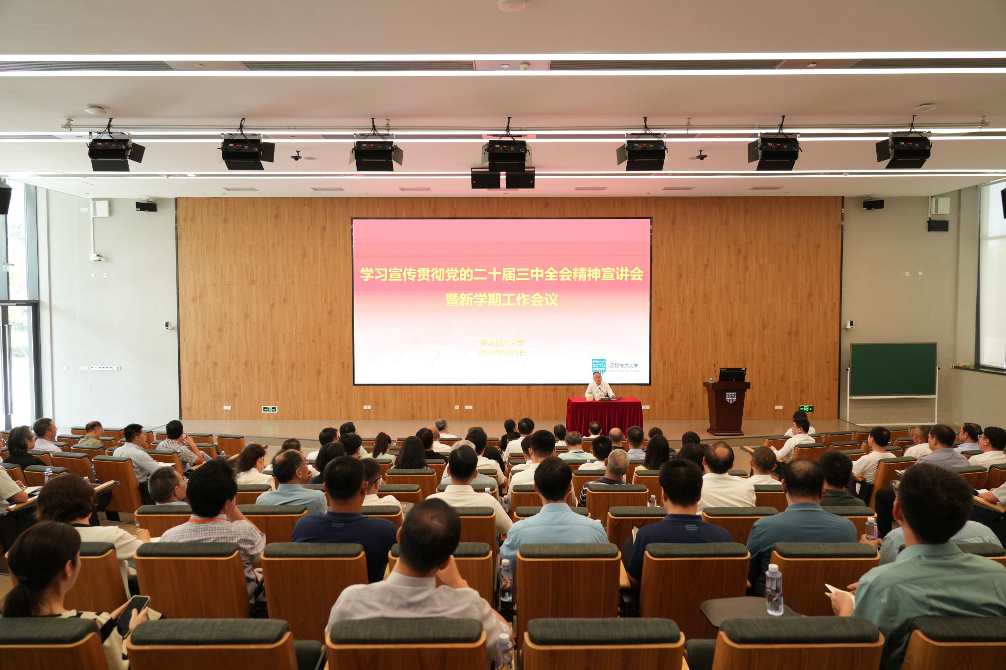 9月3日,欧冠官方网站入口在公共教学楼106教室举行学习宣传贯彻党的二十届三中全会精神宣讲会暨新学期工作会议。党委书记张基宏作专题宣讲并对新学期工作进行部署,党委副书记、纪委书记张岩鸿主持会议,校领导梁永生、明仲出席会议,各单位负责人、各学院特聘教授参加会议。