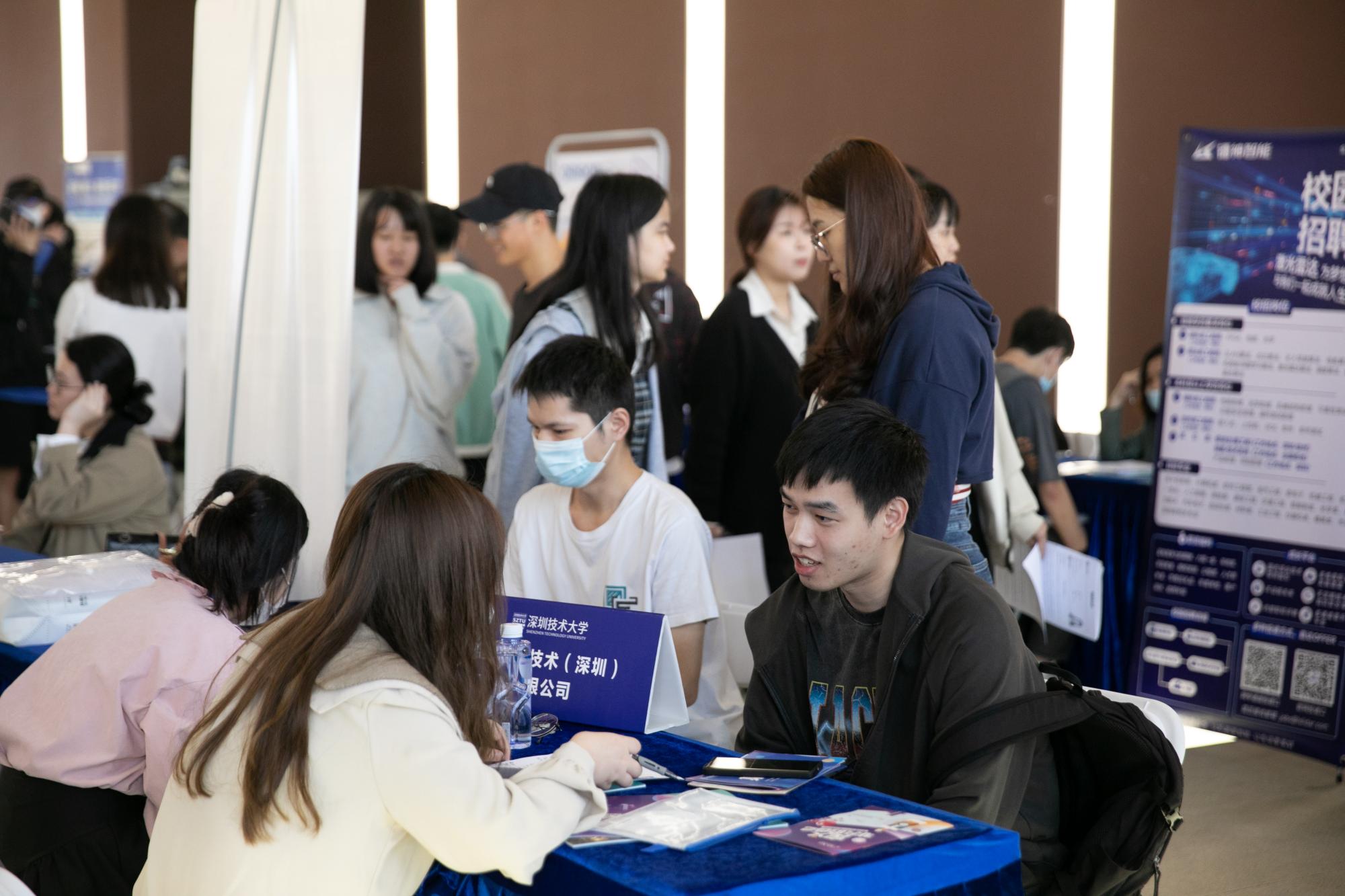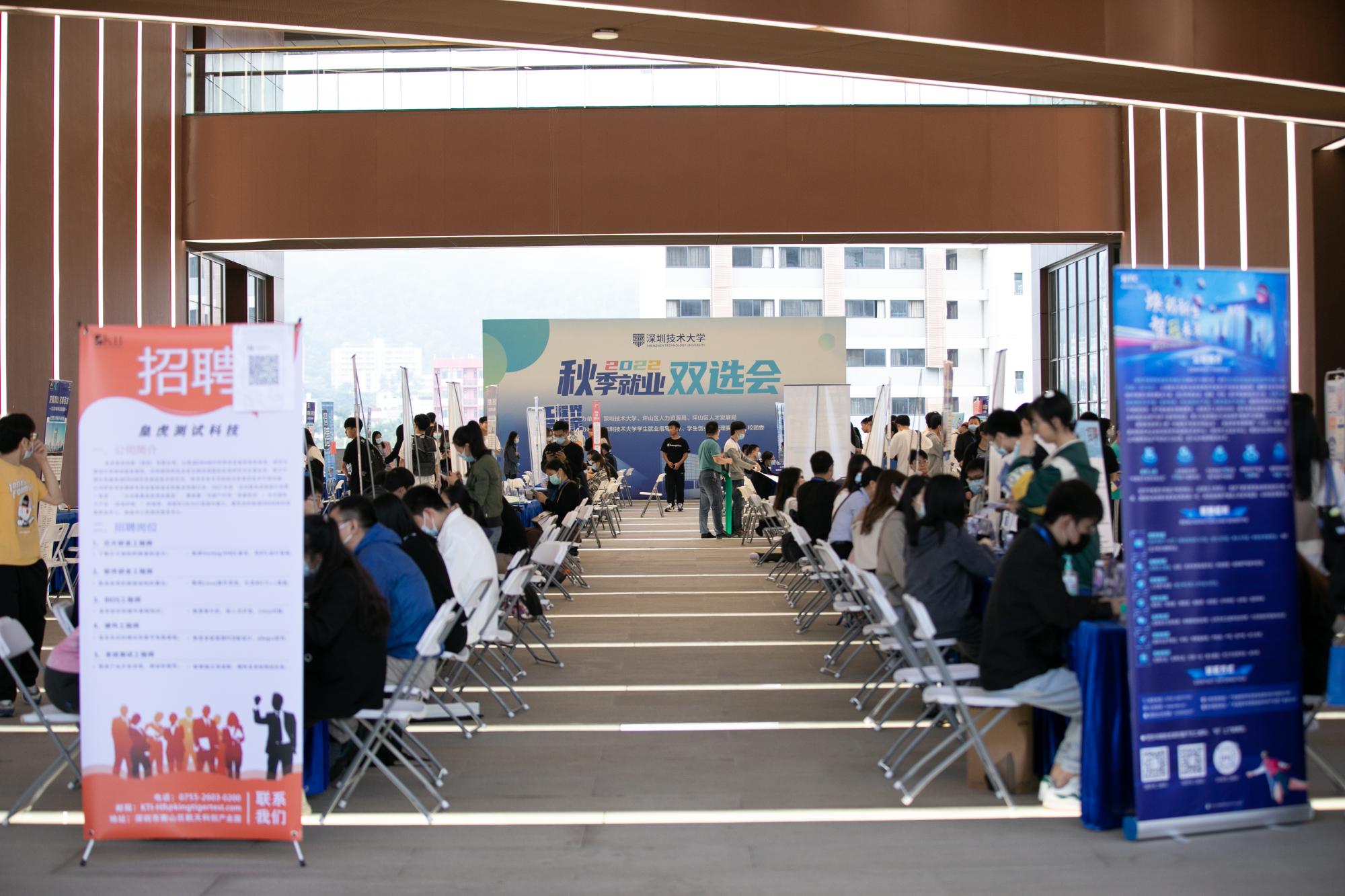 此次双选会吸引了103家企业参会,为近900名毕业生提供约2000个岗位,参展企业包括新产业生物、北理工深圳汽车研究院、捷佳伟创、康冠科技、法雷奥、欧姆龙、通标等上市公司、知名企业及研究机构,覆盖高端制造、轨道交通、信息技术、社会服务、生命健康、文化创意等行业。