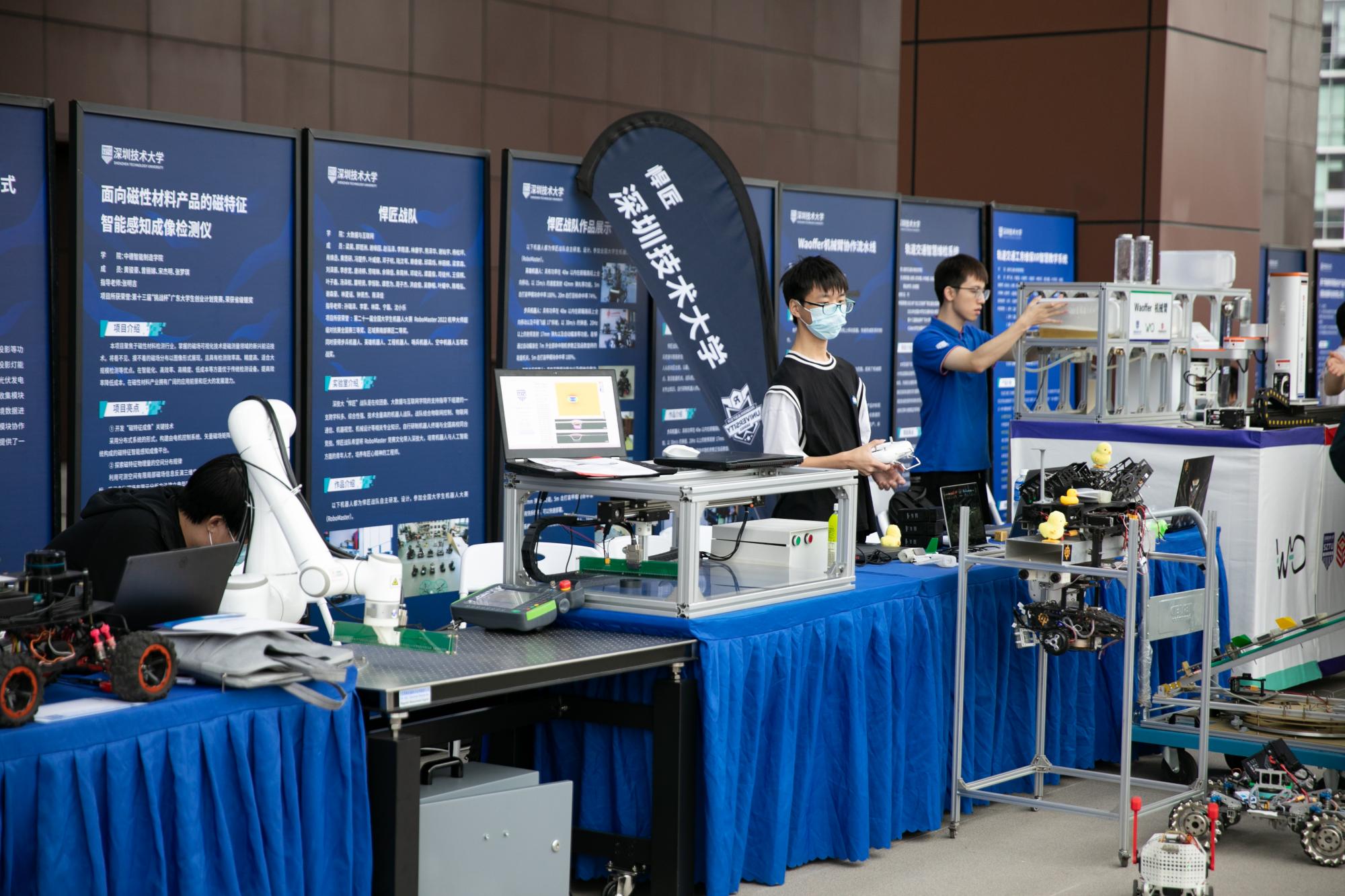 双选会同期还举办了2022年欧冠官方网站入口学生创新成果展,共有140余项省级以上参赛获奖作品和20余个学生创新实物参展。通过对学生优秀的创新创业、学科竞赛及社会实践项目成果进行集中展示,促进校内创新创业学生团队交流,营造浓厚的创新创业氛围,并向百余家企业面试官展示深技大学子的动手实践能力和创新力。不少企业面试官在看完学生创新成果后对深技大的项目式教学理念表示赞赏,充分肯定了深技大学子的动手能力和创新实践能力。
