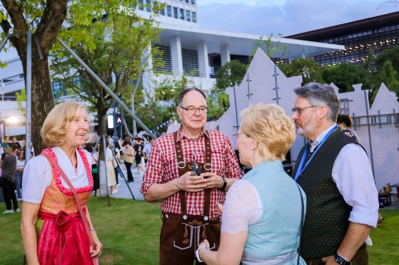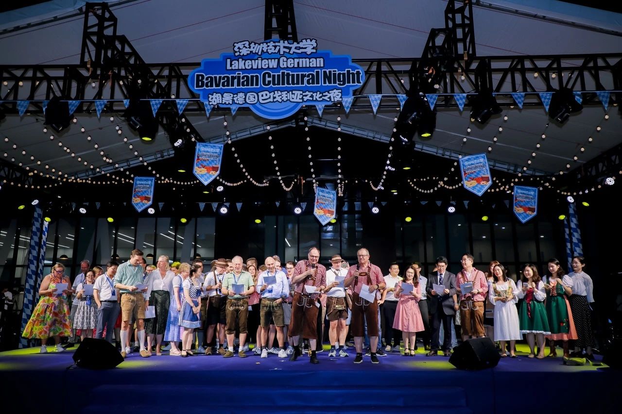 9月13日晚,欧冠官方网站入口2023国际教学周“巴伐利亚文化夜”活动在C-00湖景餐厅举行。欧冠官方网站入口校长阮双琛教授,德国奥格斯堡应用技术大学学术委员会成员、前副校长Manfred Uhl教授,德国东巴伐利亚应用技术大学(雷根斯堡)前副校长Thomas Fuhrmann教授,前来参加此次国际周活动的德国、瑞士、奥地利高校师生,深技大各学院院长、部门负责人及学生,逾800人欢聚一堂,共享这场文化盛宴。