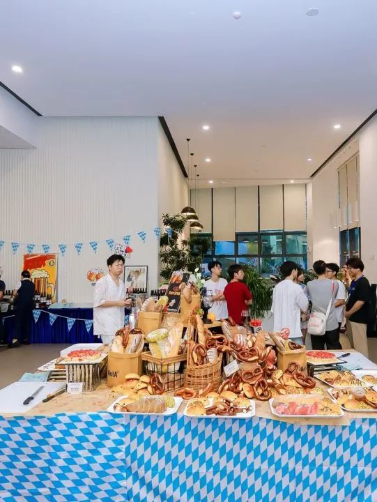 巴伐利亚拥有丰富的饮食文化,有闻名世界的猪肘、香肠、啤酒,处处体现着德国人民“无肉不欢、无酒不乐”的民族魅力。此次深技大“巴伐利亚文化夜”,中德两国厨师准备了共计18道德国美食自助和15道各式点心、饮品、水果供全场来宾尽情享用。其中以各类香肠、德国奶酪鸡蛋面疙瘩、苹果派等最受大家喜爱。