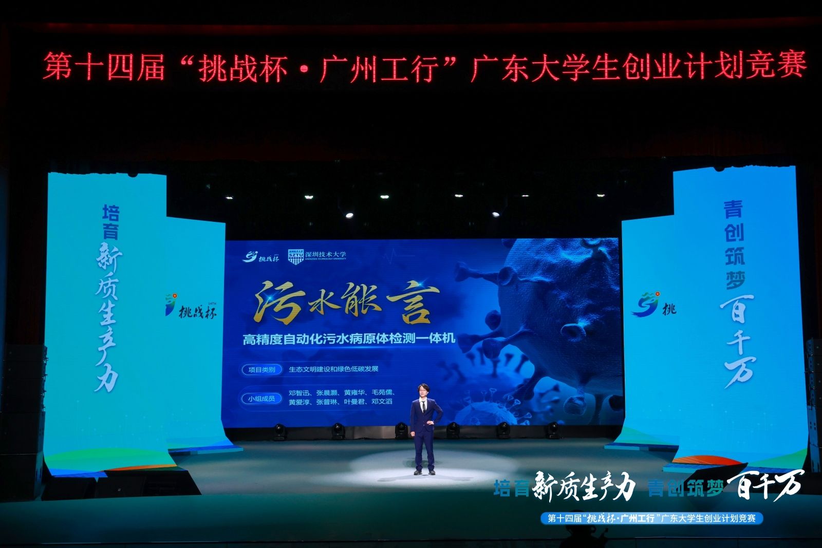 在闭幕式上,我校“污水能言-高精度自动化污水病原体检测一体机”项目代表,健康与环境工程学院2022级本科生张晨灏,作为全省4名优秀项目代表作分享,展现出深技大学子筑梦湾区,勇毅前行,在创新创业的人生道路上绽放绚丽青春之花的蓬勃朝气。
