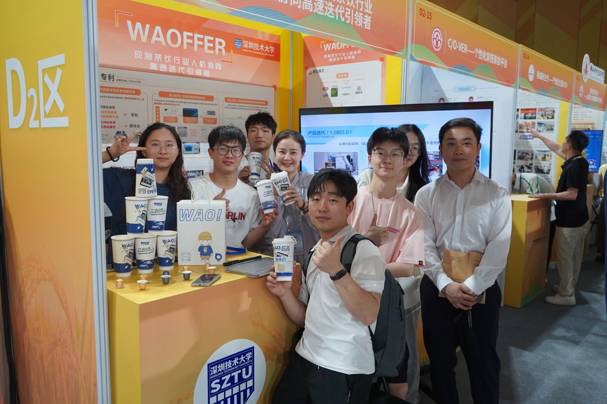 WAOFFER是一款集成了蒸汽制茶、注入原料、混合调制、仓储等多功能模块的智能自动化设备。针对行业内人力成本高、产品标准化困难、制作效率低下等痛点,团队采取机械臂与导轨结合方式改良成第二代产品,采取自动化蒸汽萃取方式升级成第三代产品,以较低成本、较高效率实现了从原料到成品的一站式制作。完成了3代产品技术迭代升级,受到了广泛的关注与认可。团队秉承匠心筑梦,唯实求精的工匠精神,致力于推动现制茶饮行业向绿色、健康、安全发展。