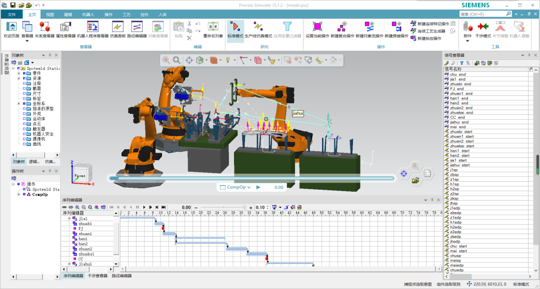 数字孪生与仿真赛项要求参赛选手熟练掌握西门子Process Simulate软件与西门子TIA Portal软件,运用这两款软件实现虚拟产线模型的组装、配置及与虚拟PLC的通讯,并编写PLC程序,使虚拟产线按规定工艺流程运行。