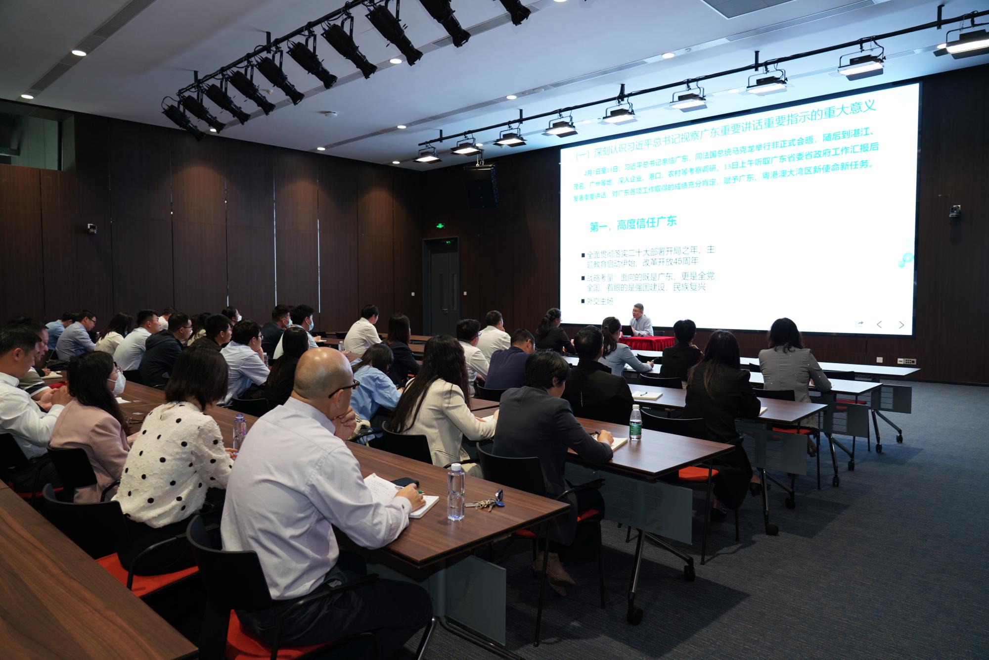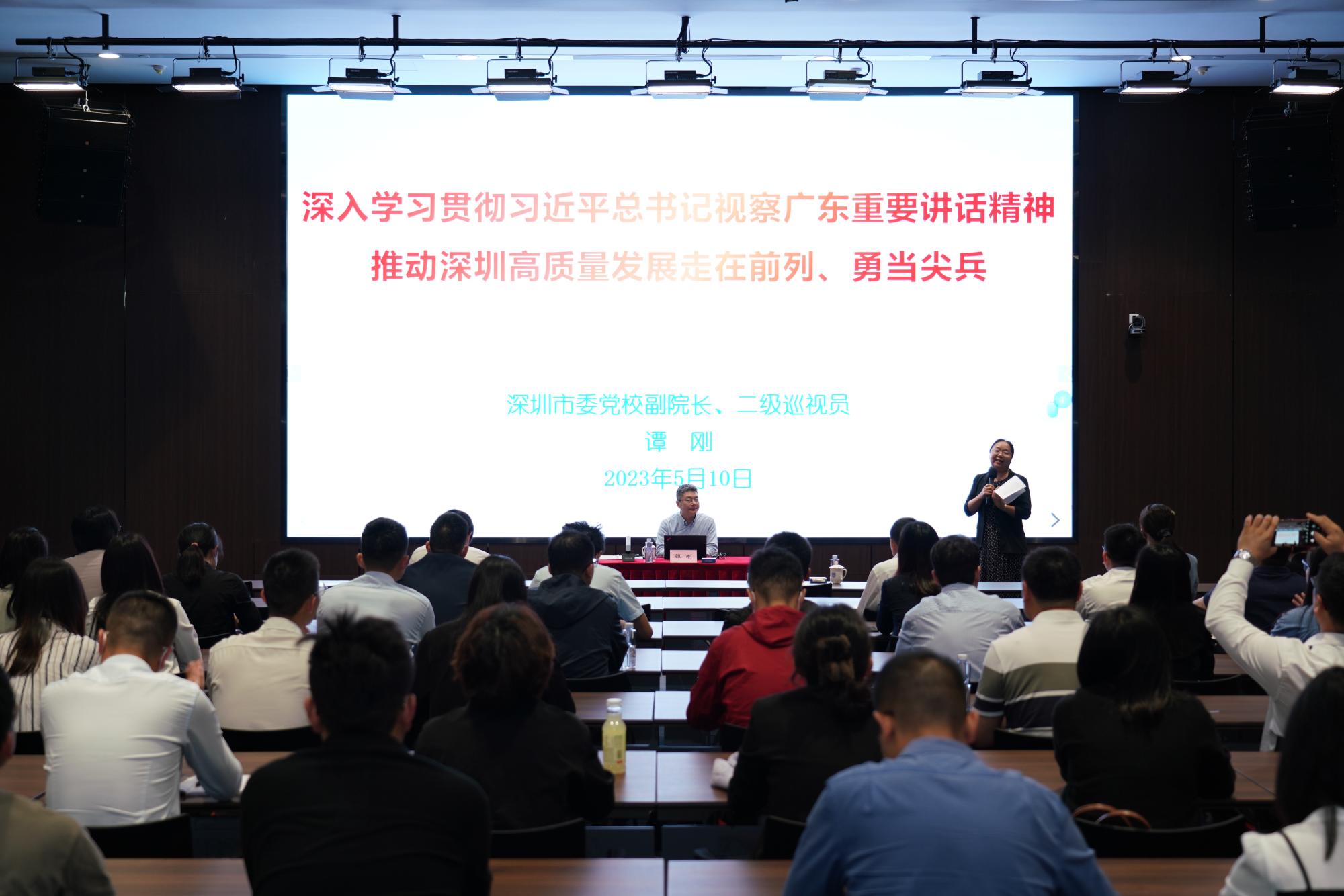 5月11日,深圳市委学习贯彻党的二十大精神宣讲团成员、深圳市人大常委会委员、深圳市委党校二级巡视员、深圳社会主义学院副院长谭刚作题为《深入学习贯彻习近平总书记视察广东重要讲话精神,推动深圳高质量发展走在前列、勇当尖兵》的专题报告。
