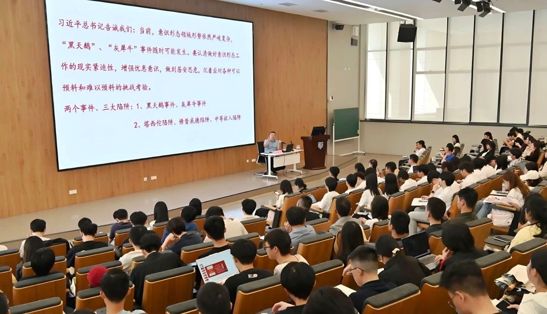 讲座中,张彬紧紧围绕主题,从一份任务、一种信仰、一个时代、一份坚守、一场斗争、一个中国六个方面深入阐释了当前国家面临的形势与挑战。张彬从百年未有之大变局的时代背景出发,分析了当前我国所处的历史方位和发展目标,解读了当下复杂多变的台海形势和国际关系。