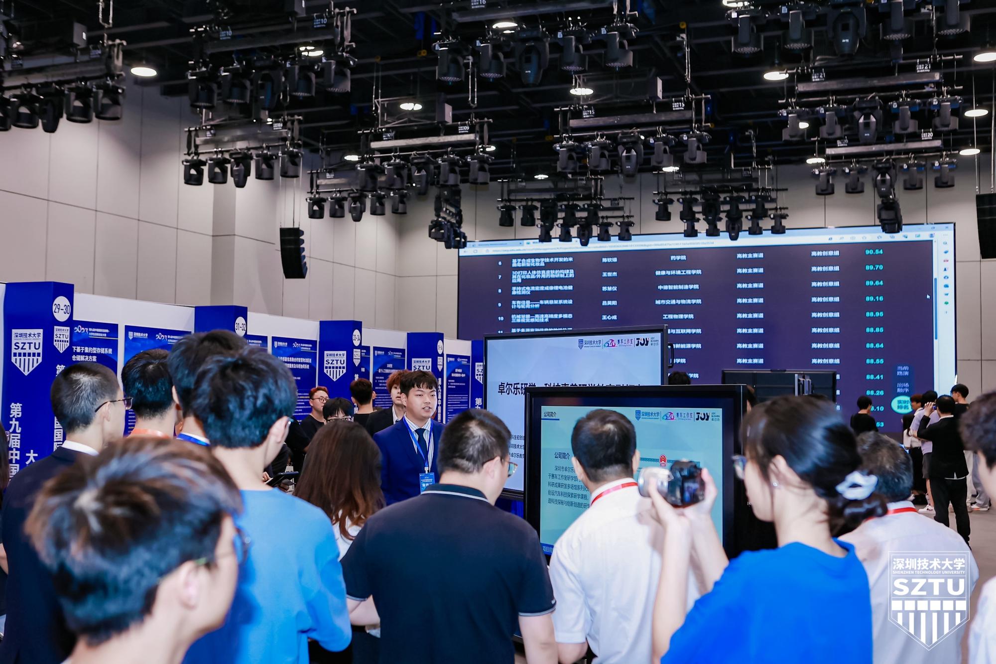 三分钟,可以完成什么事?对于深技大学子们而言,三分钟可以呈现一场精彩绝伦的“极速路演”,为评委们带来一场极致的视听盛宴。6月13日上午,参赛选手们利用项目展板、实物展示、视频介绍等方式对项目的技术创新点、核心竞争优势等方面进行阐述。最后,16个项目从中脱颖而出,进入到最后的奖项争夺赛。