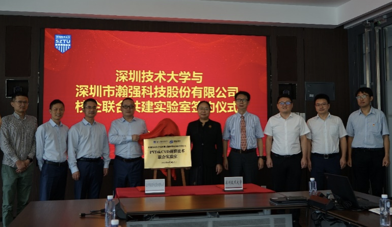 双方代表签署校企联合共建实验室协议,瀚强科技将投入500万元与深技大共建“PVD&CVD薄膜技术联合实验室”并开展科技成果转化。今后,双方将在深化产学研结合、技术创新、人才培养等方面开展深入合作。