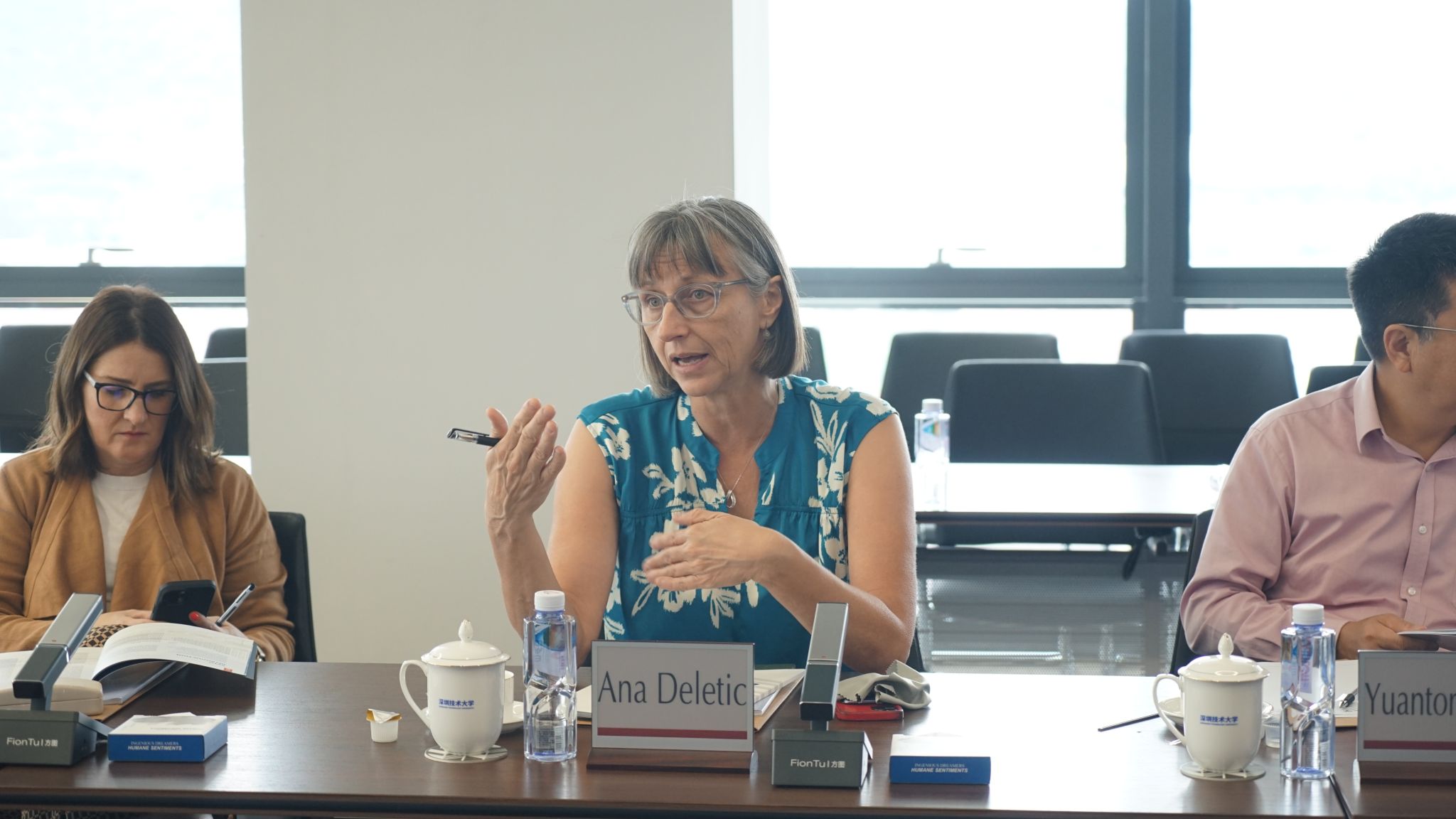 昆士兰科技大学代表团与深技大相关学院院长、副院长(外事专员)进行洽谈。国际合作与学生工作部主任曾思予向代表团介绍了深技大筹建历程和国际化办学特色。昆士兰科技大学工程学部部长阿娜·德丽特克(Ana Deletic)介绍了昆士兰科技大学在工程学科的专业设置、人才培养、研究与创新、国际影响力等情况。深技大中德智能制造学院、城市交通与物流学院、集成电路与光电芯片学院、新材料与新能源学院、健康与环境工程学院院长及副院长(外事专员)分别介绍了各自学院的特色、专业方向及发展成果。