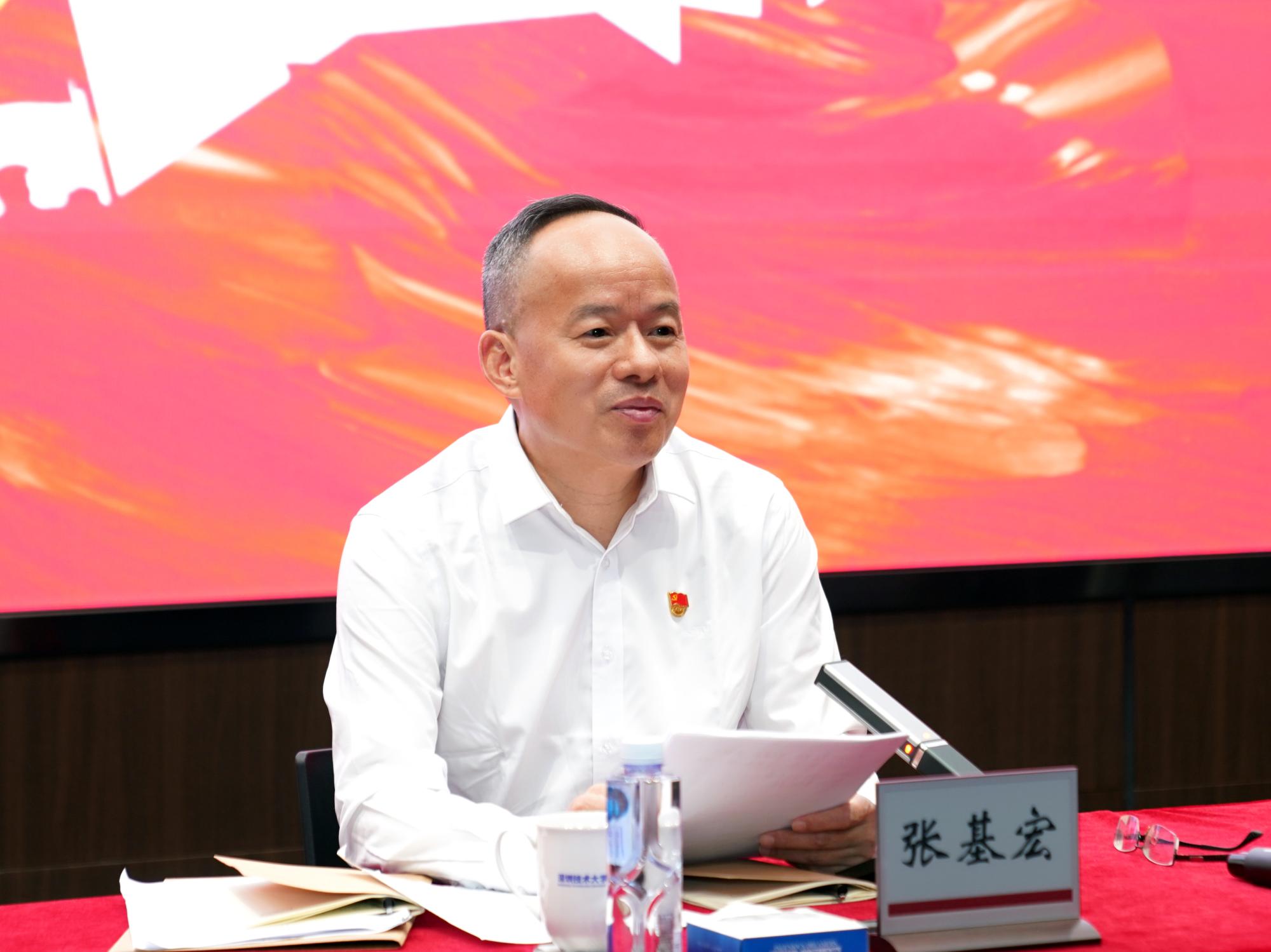 张基宏强调,必须要坚持社会主义办学方向,落实立德树人根本任务,培养德智体美劳全面发展的社会主义建设者和接班人。要把思想政治工作贯穿教育教学全过程,把思想政治工作做到每一位学生心坎上,要大力推进“思政课程”和“课程思政”建设,系统提升学校马克思主义学院(人文社科学院)规模和授课水平,用好深圳城市发展的鲜活案例和生动教材,不断增强思政课的思想性、理论性和亲和力、针对性。要继续加大对辅导员和班主任教师的支持帮助力度,提升任课教师参与思想政治工作的积极性、主动性和创造性,实现全员育人、全程育人、全方位育人。