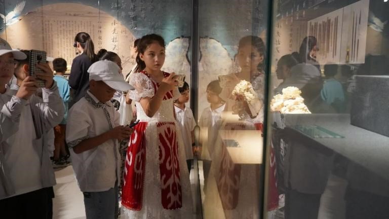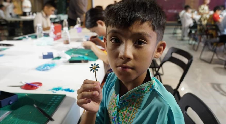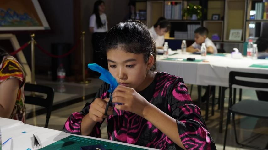 同学们与来自新疆和田的研学团体沉浸式体验“点翠”工艺课程