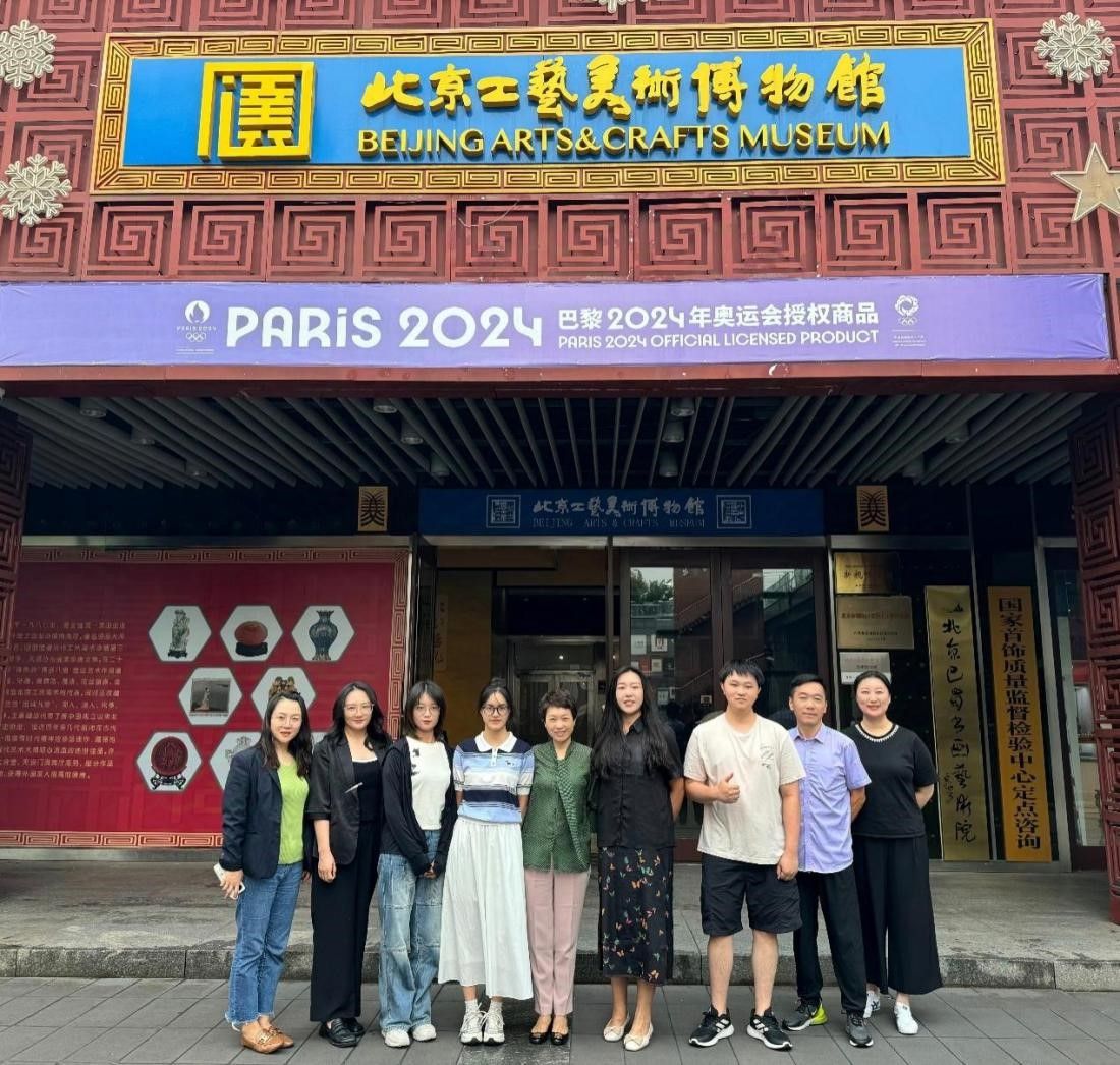 在北京工艺美术博物馆,创意与设计学院学子利用专业知识与创新能力,精心设计展板和宣传册、开发小程序、协助校正展签翻译等,为观众提供智能化的导览服务与互动体验,以图文并茂的形式向外界传播国宝的独特魅力与价值。实习期间,同学们积极参与博物馆开展的“非遗传承大课堂”活动,并承担起教学之责,接待了来自新疆和田的研学团,一起深度体验传统工艺,传承和弘扬中华优秀传统文化。