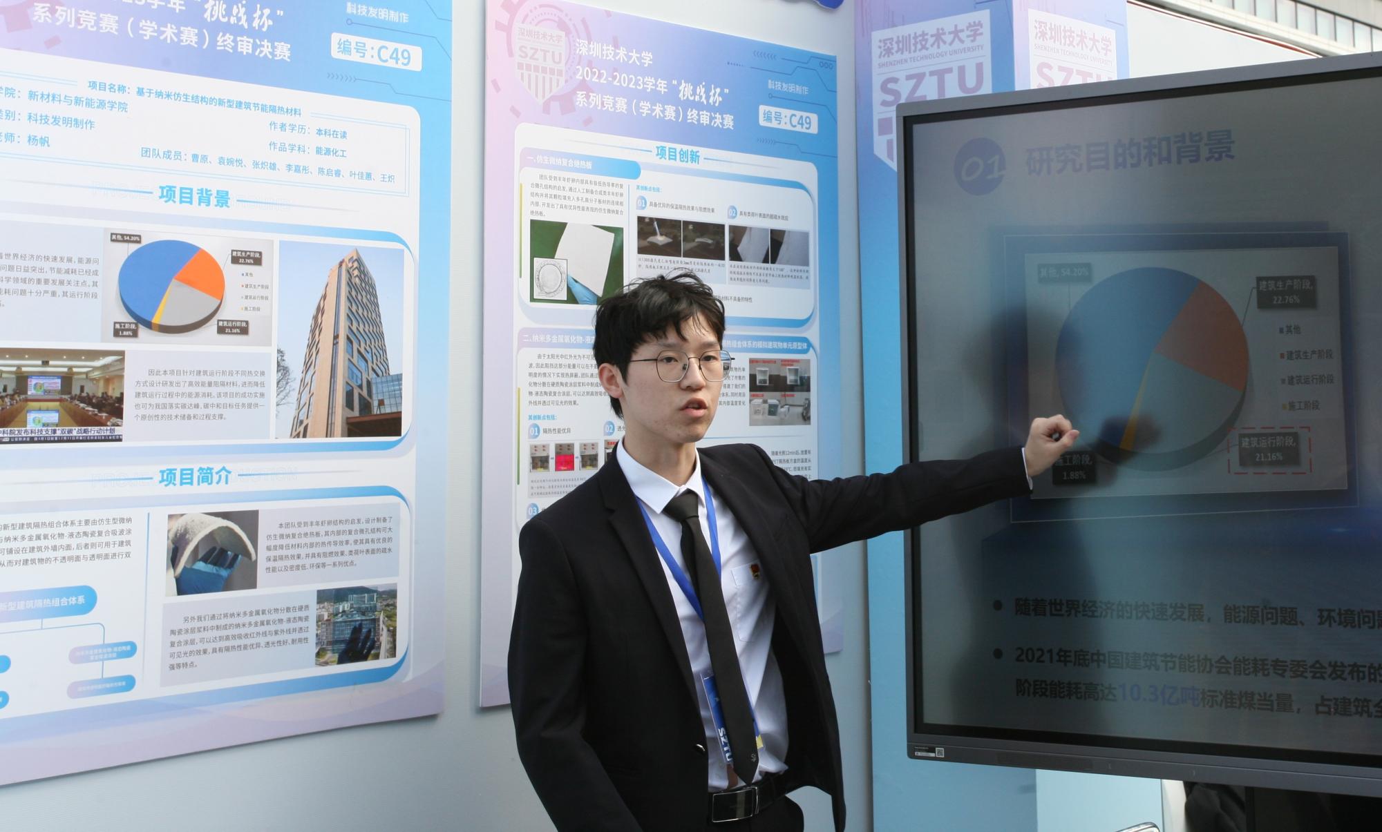欧冠官方网站入口2022-2023学年“挑战杯”系列竞赛(学术赛道)自去年10月全面启动以来,共收到来自全校14个学院的共112件作品,作品涵盖机械控制、信息技术、数理、生命科学、能源化工和社会等多个学科。经学院初评、校级复审,最终确定59件作品入围终审决赛。