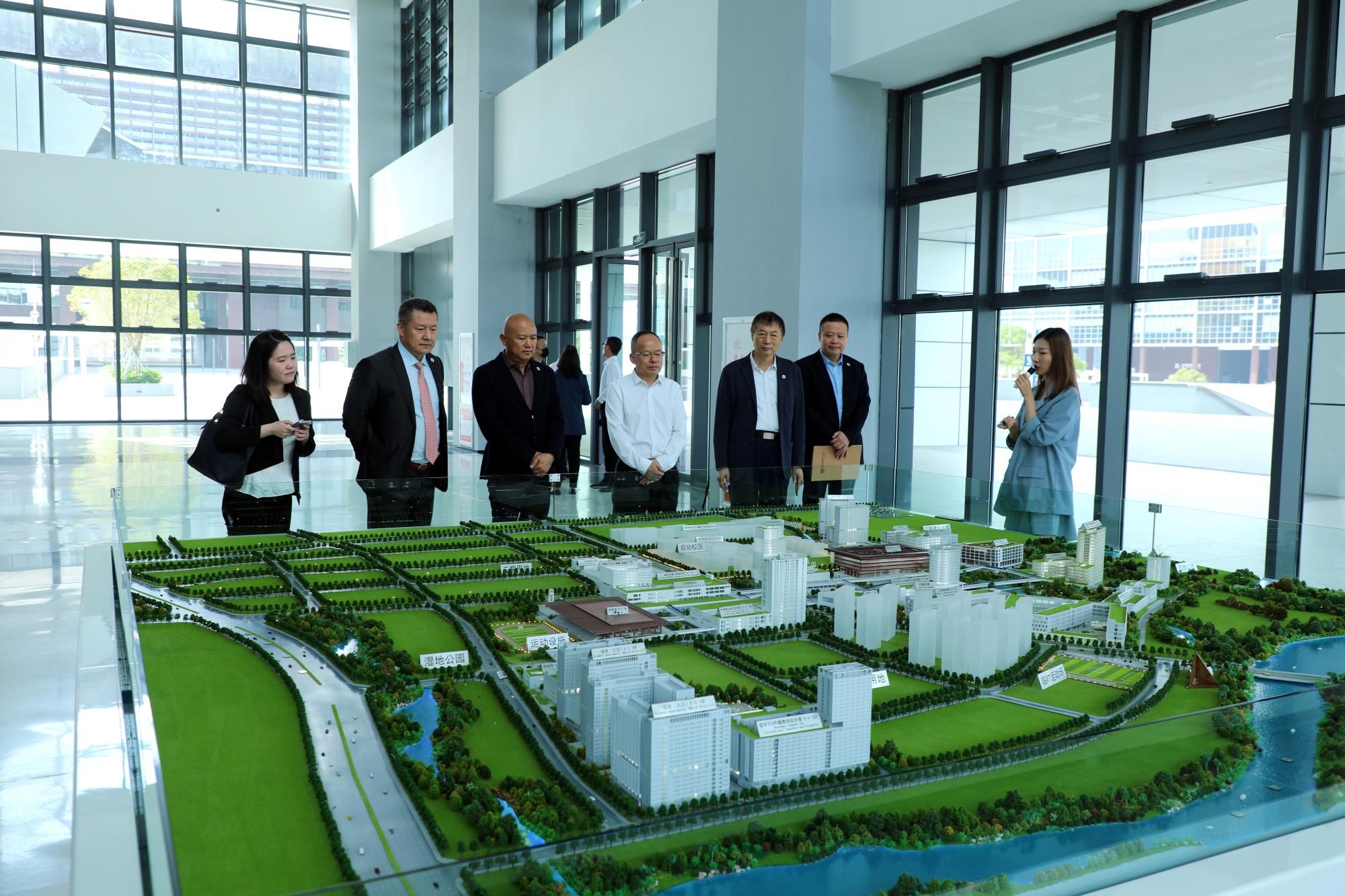 座谈会后,张基宏书记陪同陈明金主席一行参观了校园。学校党委办公室、教务部、基建部、大数据与互联网学院、健康与环境工程学院等部门负责人参加活动。