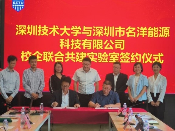 近日,欧冠官方网站入口与名洋能源科技有限公司(以下简称“名洋能源”)、深圳市泰科动力系统有限公司(以下简称“泰科动力”)举行校企联合共建实验室签约仪式。名洋能源董事长谭黎明、泰科动力董事长李昌彪,深技大科研与校企合作部、新材料与新能源学院负责人及相关教师出席签约仪式。