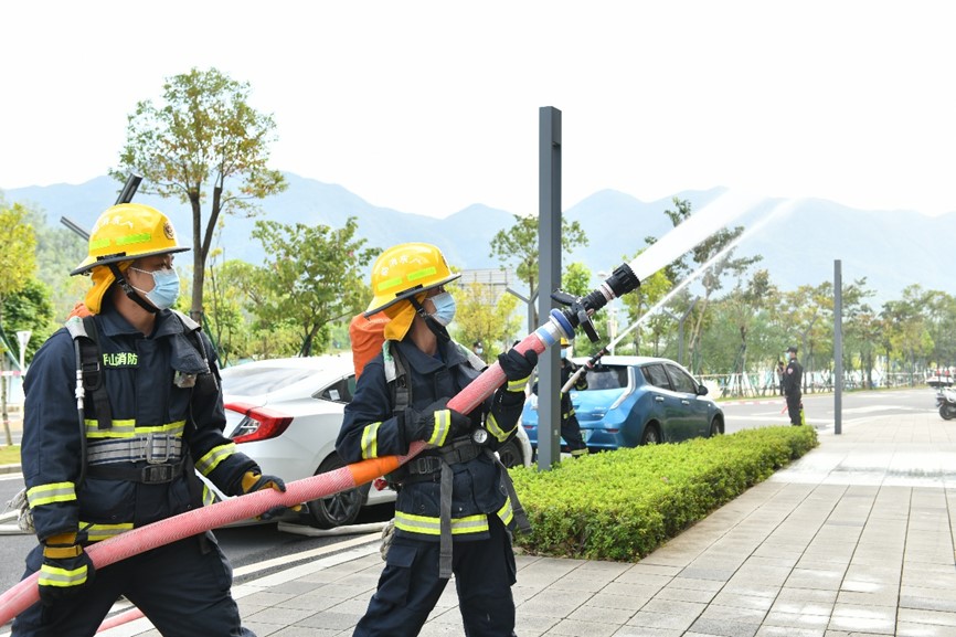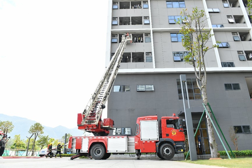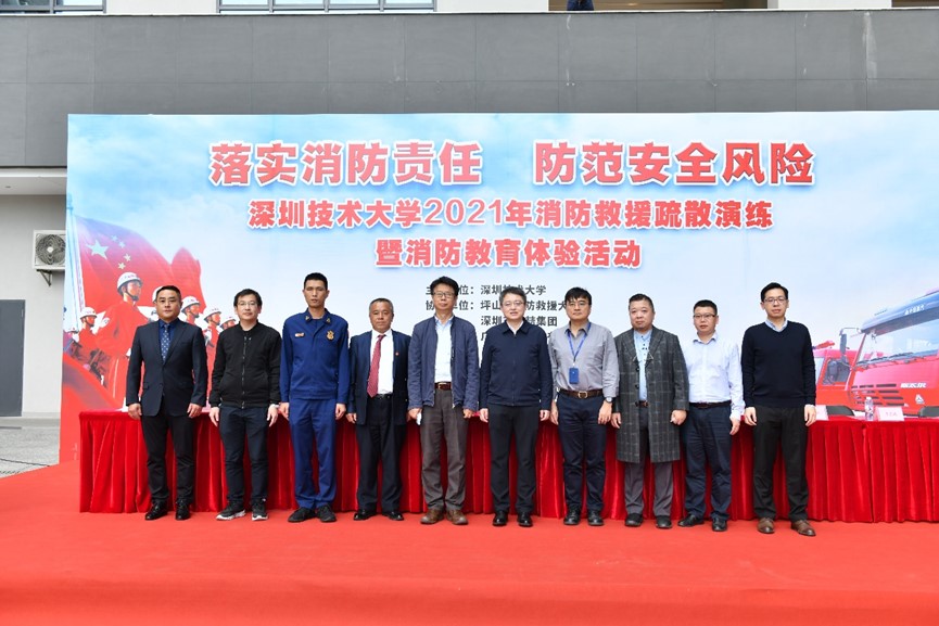 为加强校园应急疏散救援能力建设,增强师生消防安全意识,营造校园良好消防安全环境。11月15日下午,以“落实消防责任 防范安全风险”为主题的消防救援疏散演练暨消防教育体验活动在学校E-3宿舍广场举行。副校长梁永生、坪山区消防救援大队副大队长罗洪辉、相关单位负责人、单位安全管理员、实验室安全员、部分学生及物业员工参加了本次活动。
