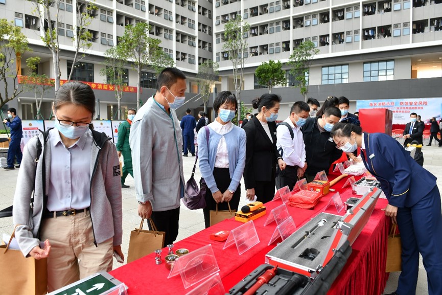 除了消防演练,活动现场还设置有灭火实操、逃生屋教育体验、消防设施和消防救援装备展示等学习体验环节。在场师生员工积极参与实践,努力提升消防技能。