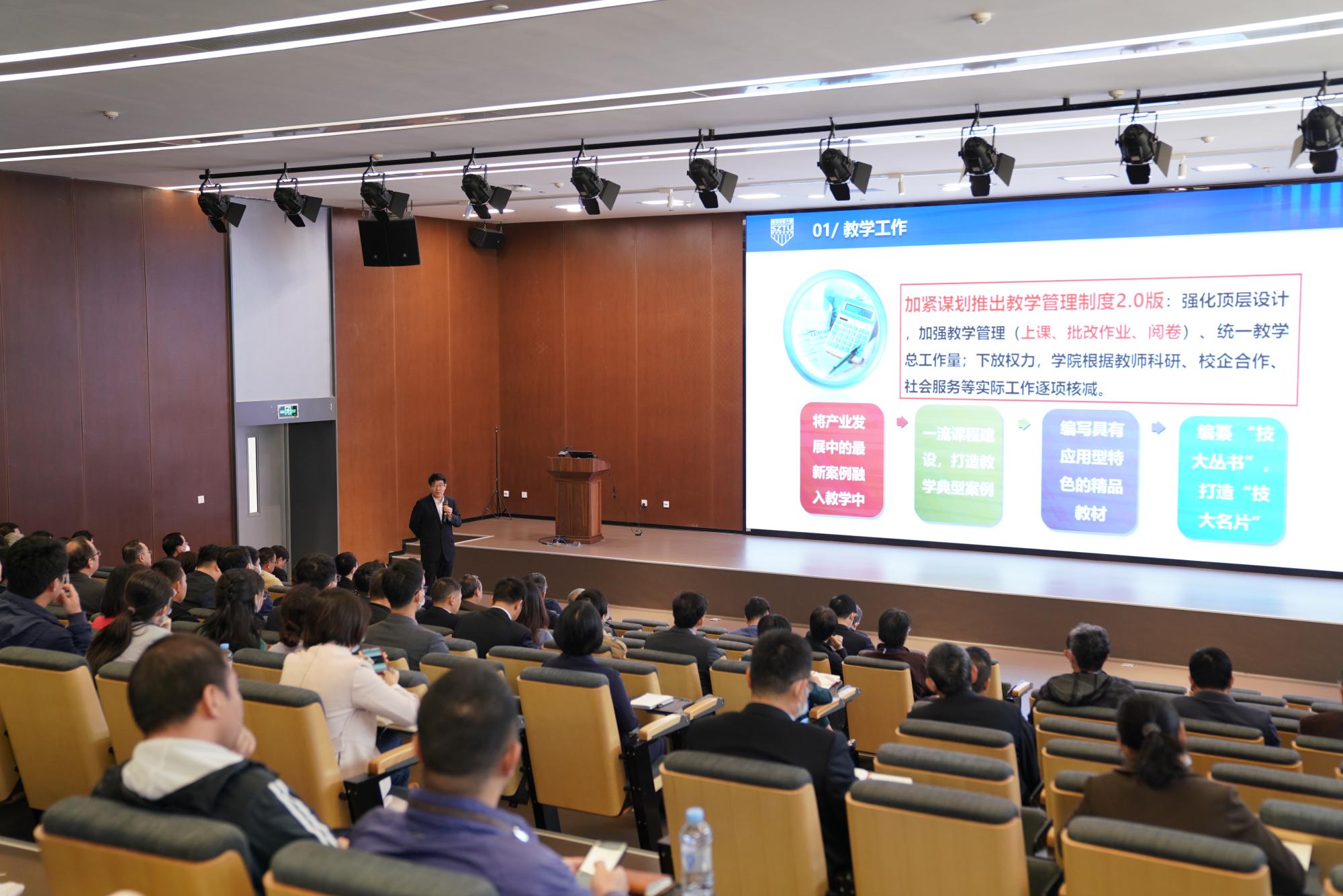 校长阮双琛布置2023年学校重点工作,强调以高水平服务管理,助推学校高质量发展,重点聚焦两大方面:一是深入学习领会高质量发展内涵,坚持高水平对外开放,加快构建研究技术型大学新发展格局。二是围绕贯彻新发展理念,开展学校各项工作,明确了教学、招生、科研、校企合作、研究生教育等十项内容。