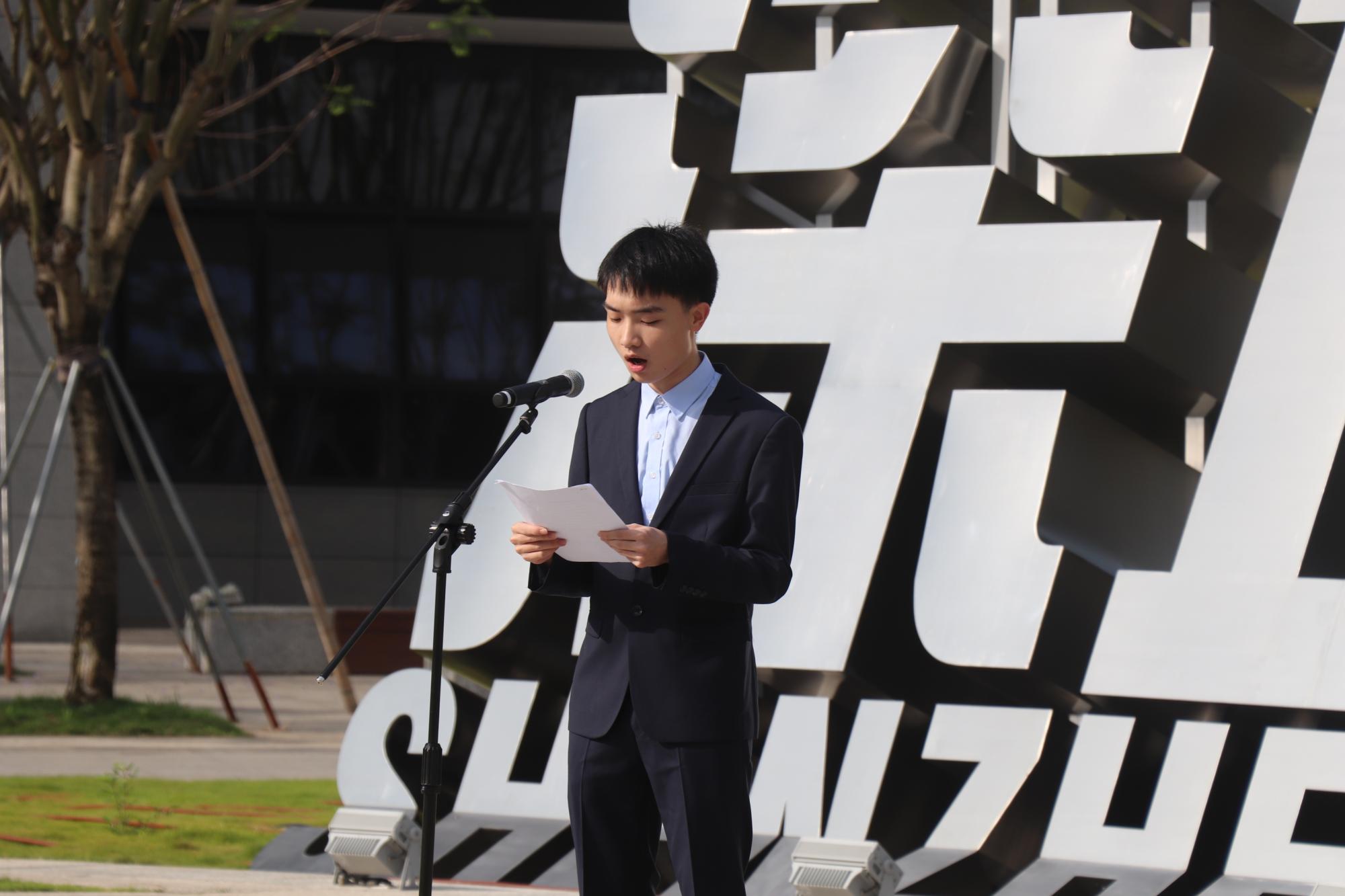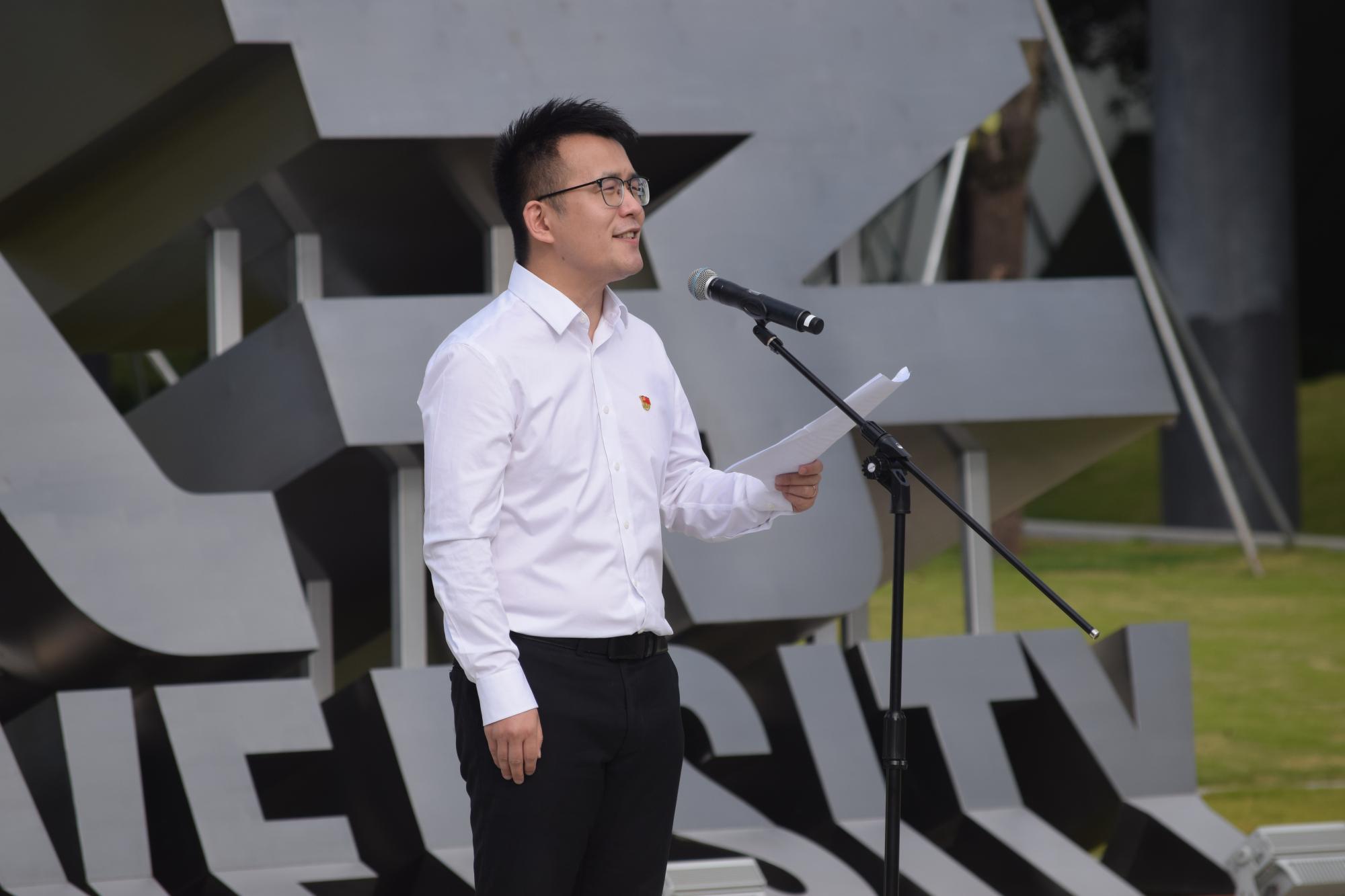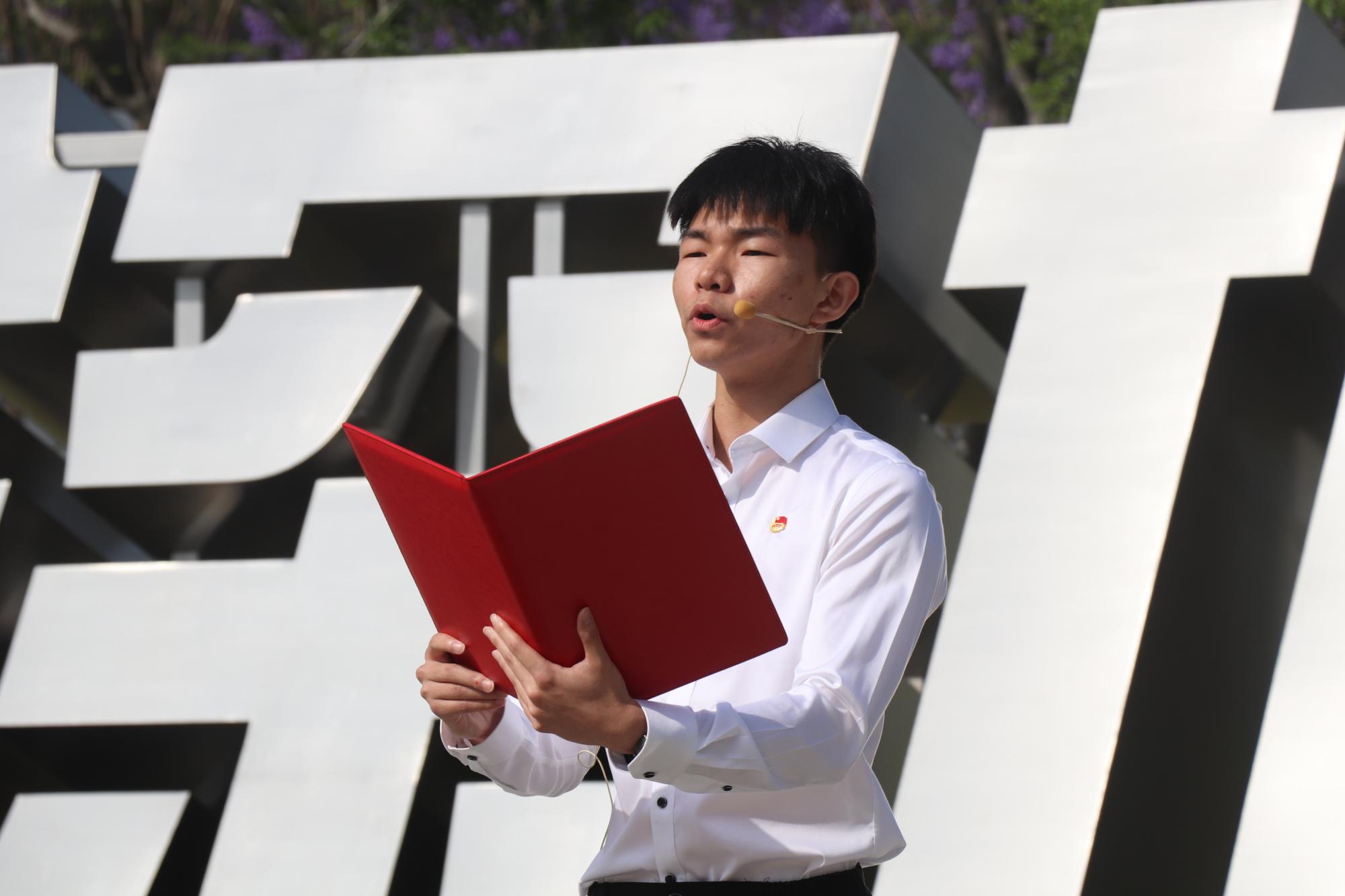 来自商学院2021级国际商务专业4班的程柏栋作为新团员代表发言。他说,在建团100周年之际加入中国共青团,他感到非常兴奋,并号召团员们能以百年征途为起点,接棒先辈的使命与责任,坚守共青团员的初心。