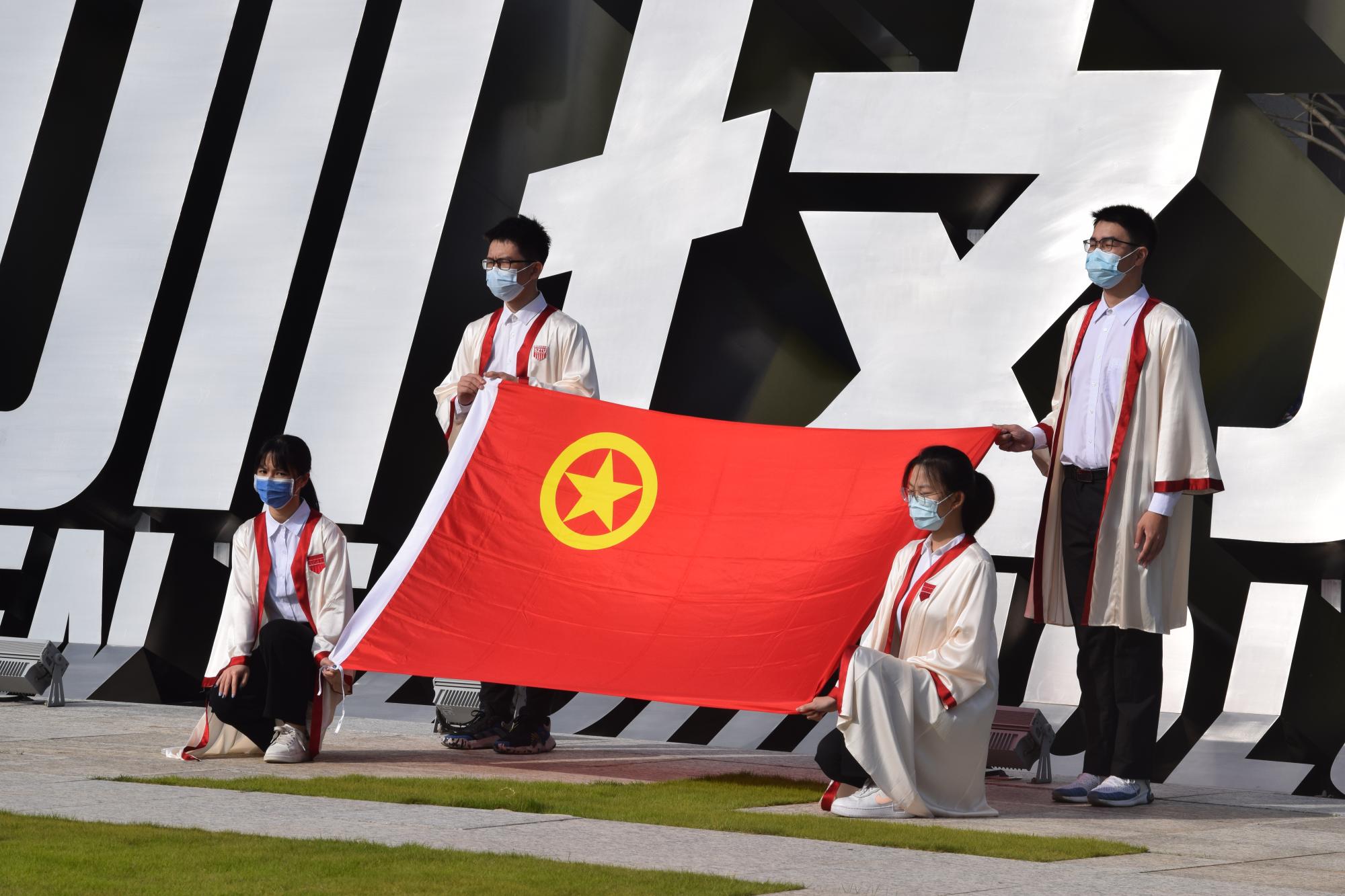仪式在慷慨激昂的团歌中落下帷幕,希望我们广大青年能够牢记习近平总书记的教诲,立志民族复兴,不负韶华,不负时代,不负人民,在青春的赛道上奋力奔跑,争取跑出当代青年的最好成绩!