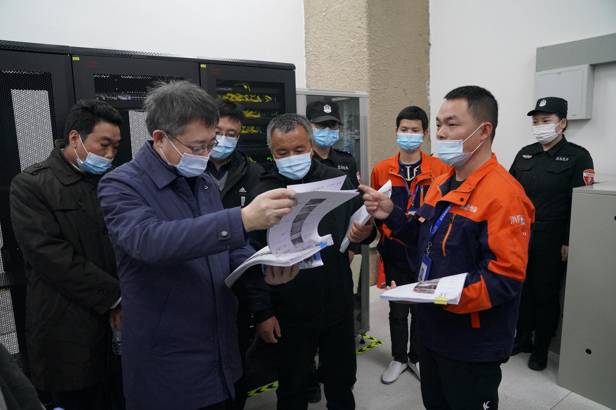 检查组详细检查了科研实验室、危化品仓库、学生宿舍、学生食堂、消防监控中心、配电房、网络机房等重点部位,实地查看了解疫情防控、实验室安全管理、食品卫生管理、消防监控和网络设备运行,以及其它安全措施落实等情况。